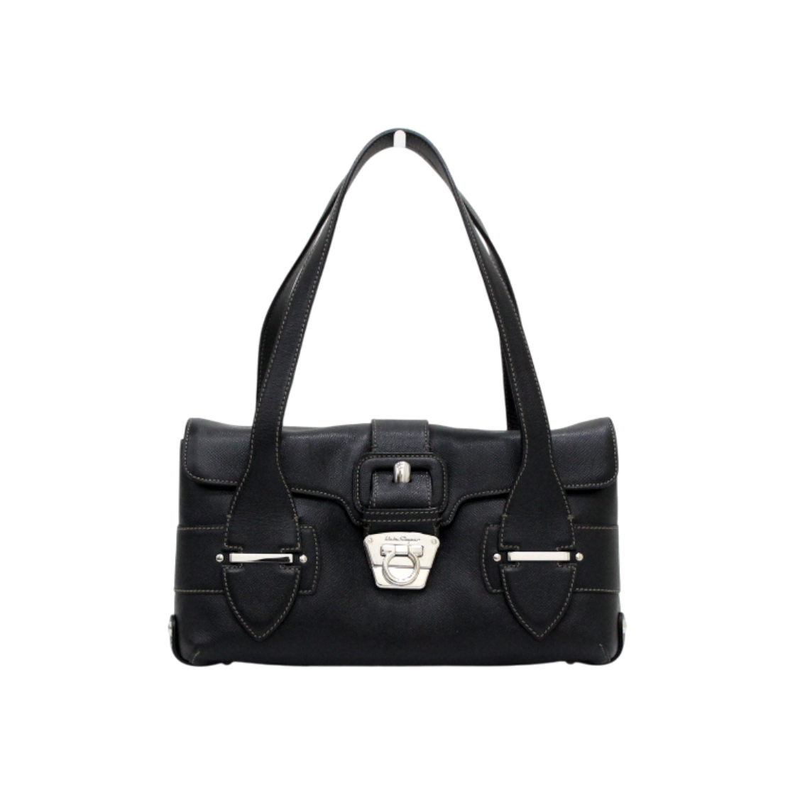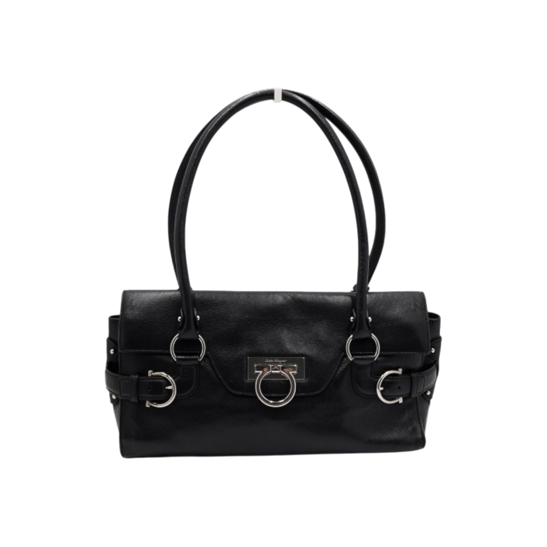 페라가모 21 A050 블랙 유광 레더 은장 간치니 락 버클 숄더백 aa36593