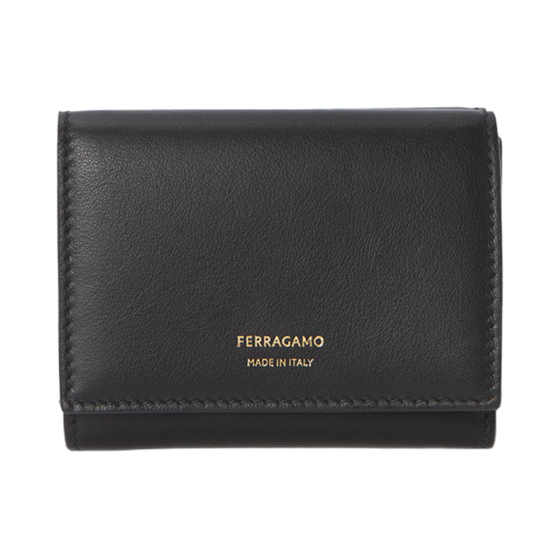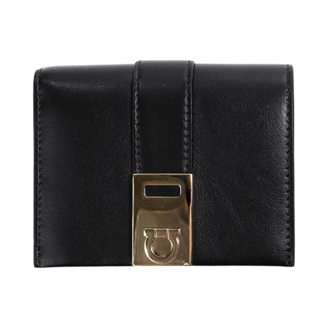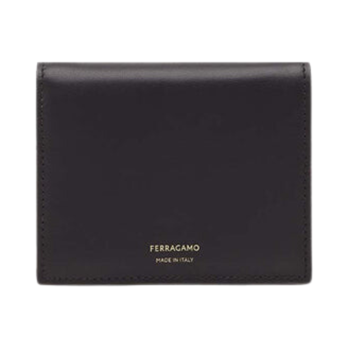 페라가모 카프 레더 로고 스탬프 컴팩트 월렛 블랙