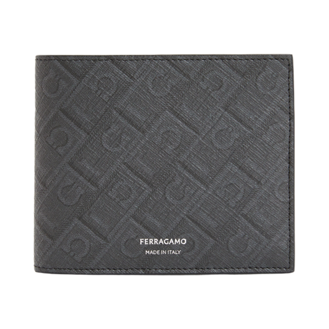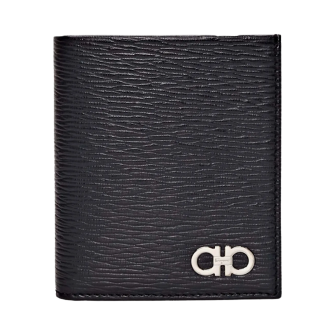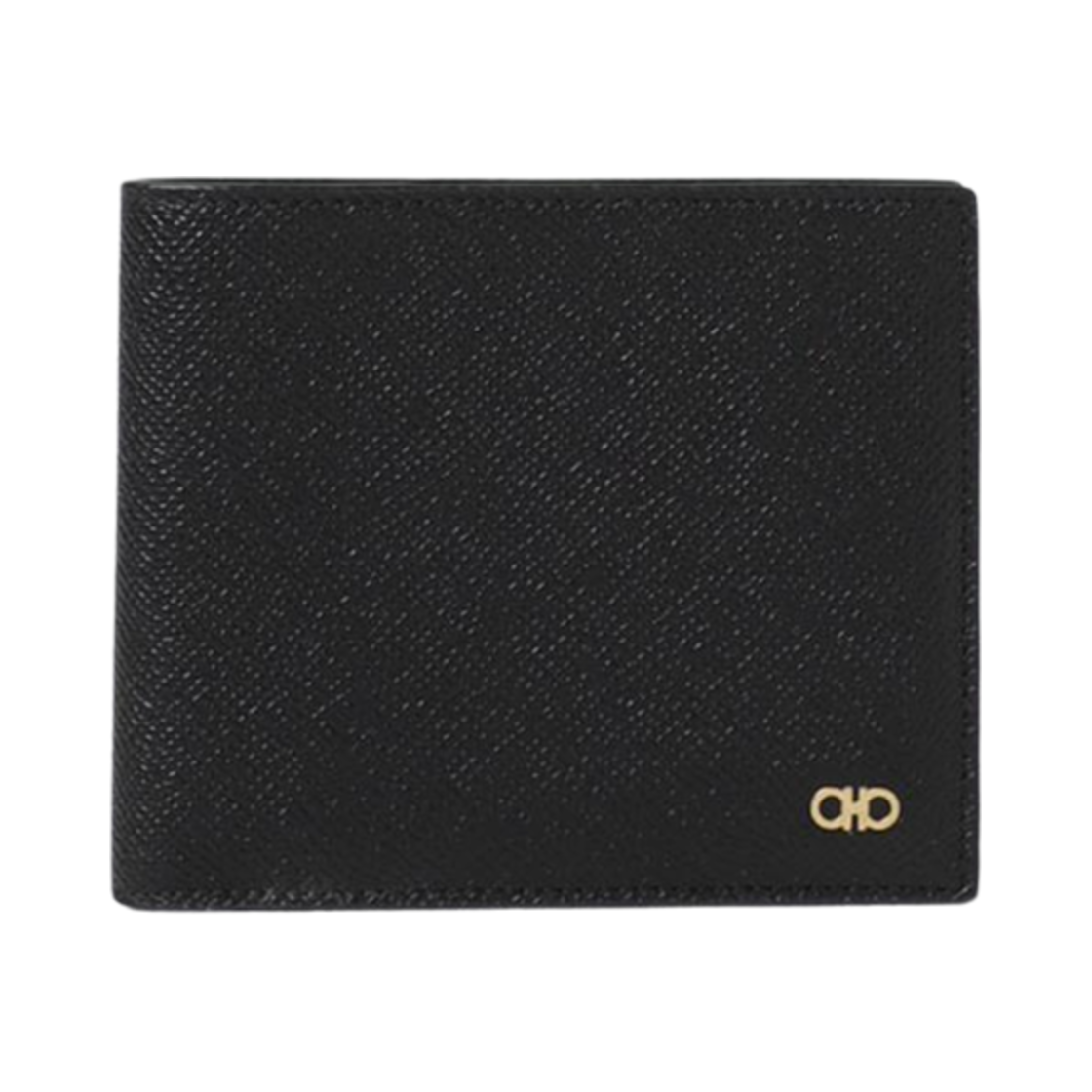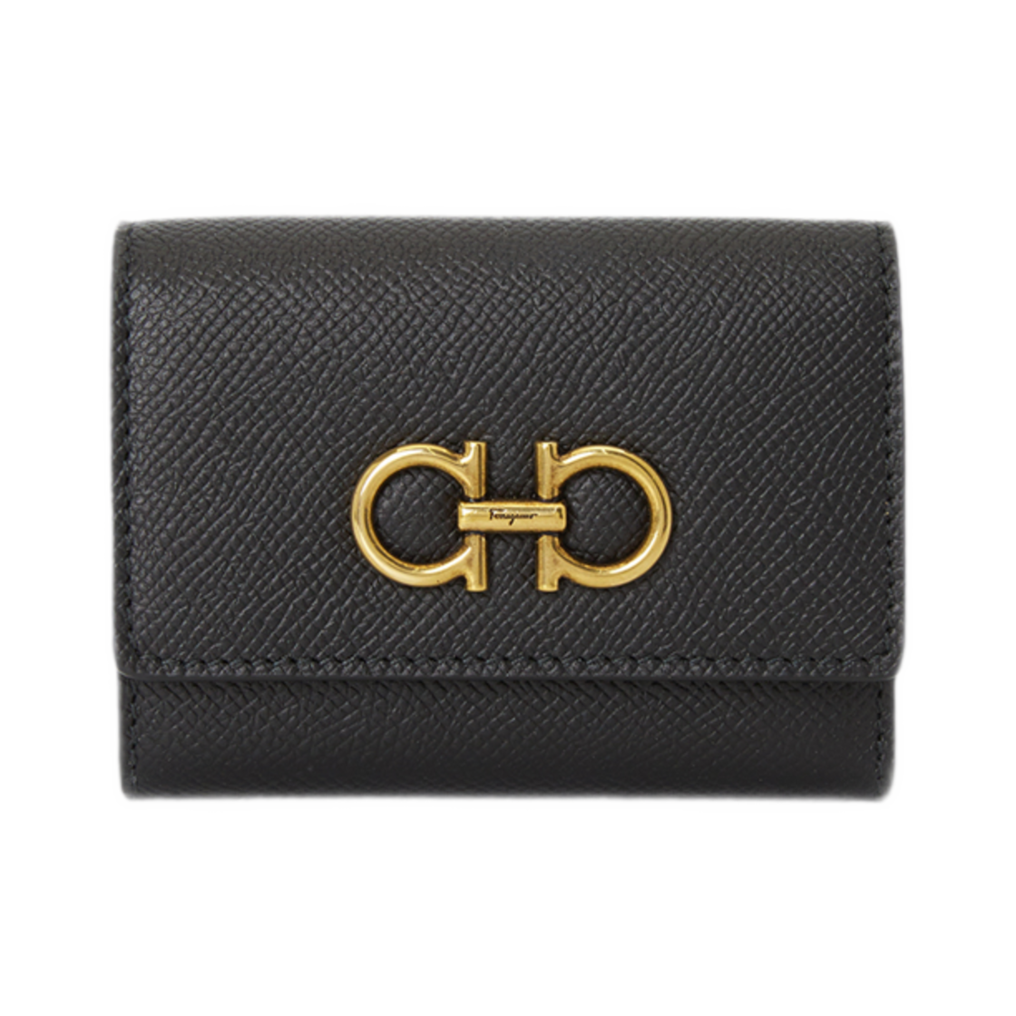 페라가모 카프 레더 로고 스탬프 컴팩트 월렛 블랙
