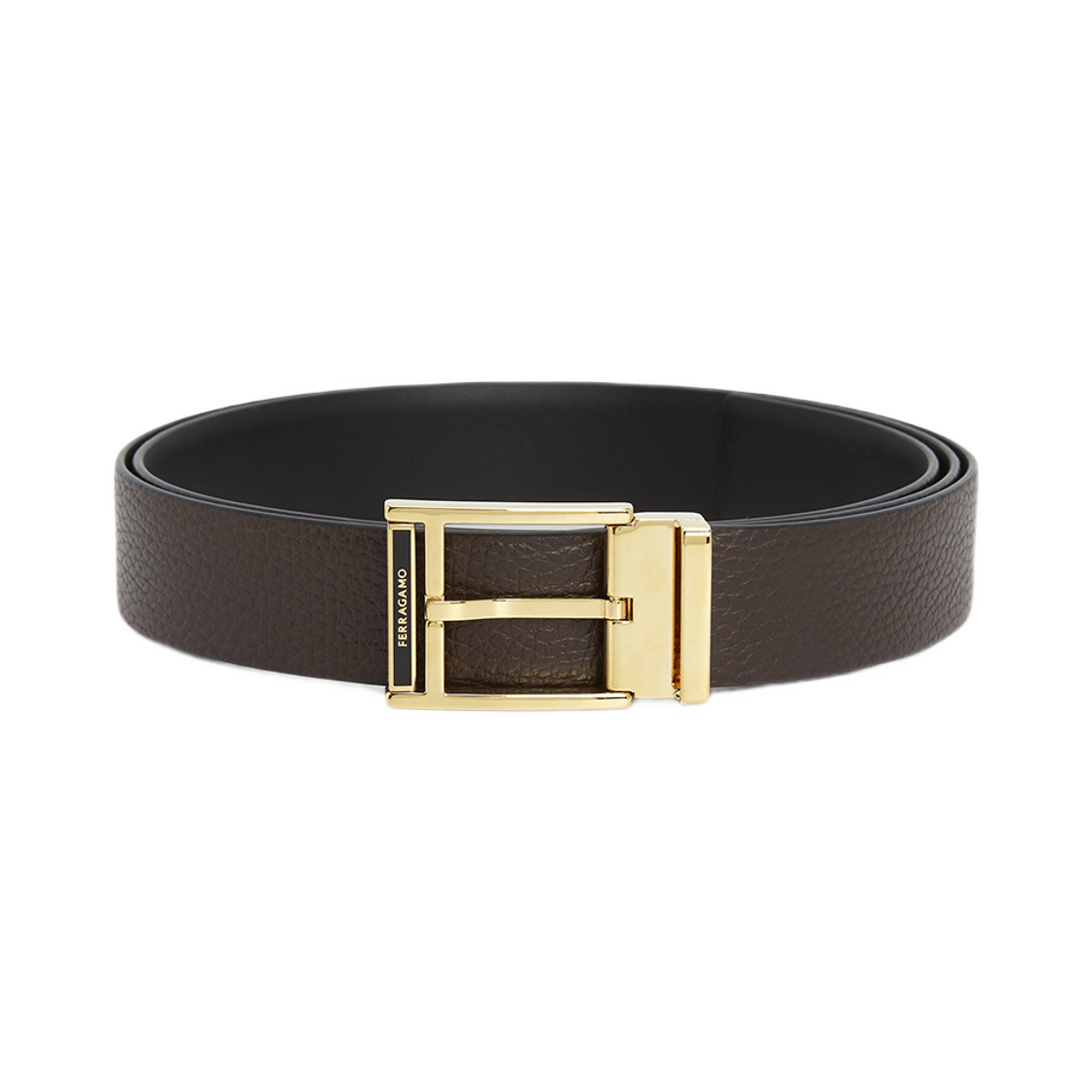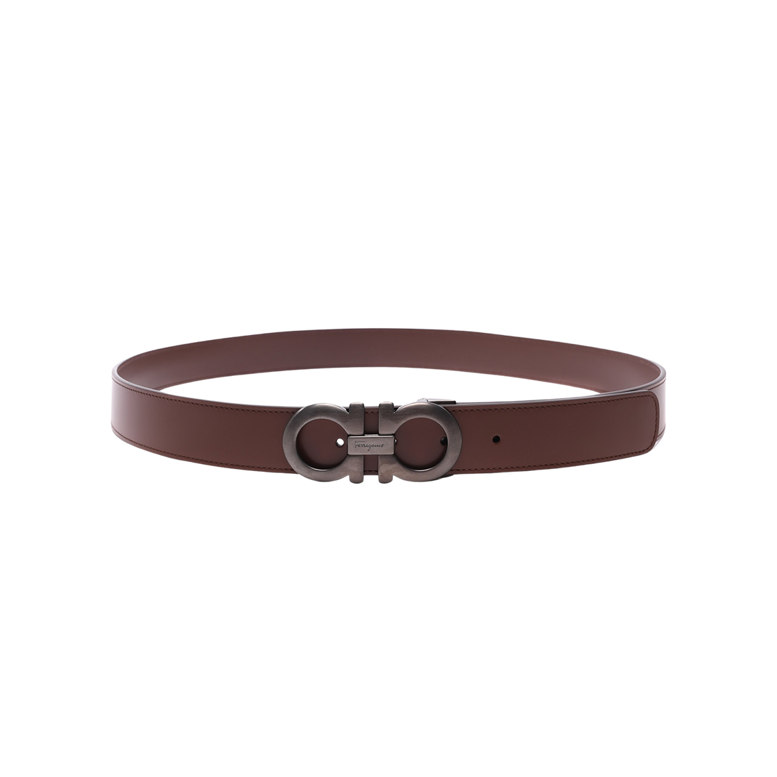 페라가모 리버시블 어드저스터블 해머드 카프스킨 레더 간치니 벨트 블랙 초콜릿