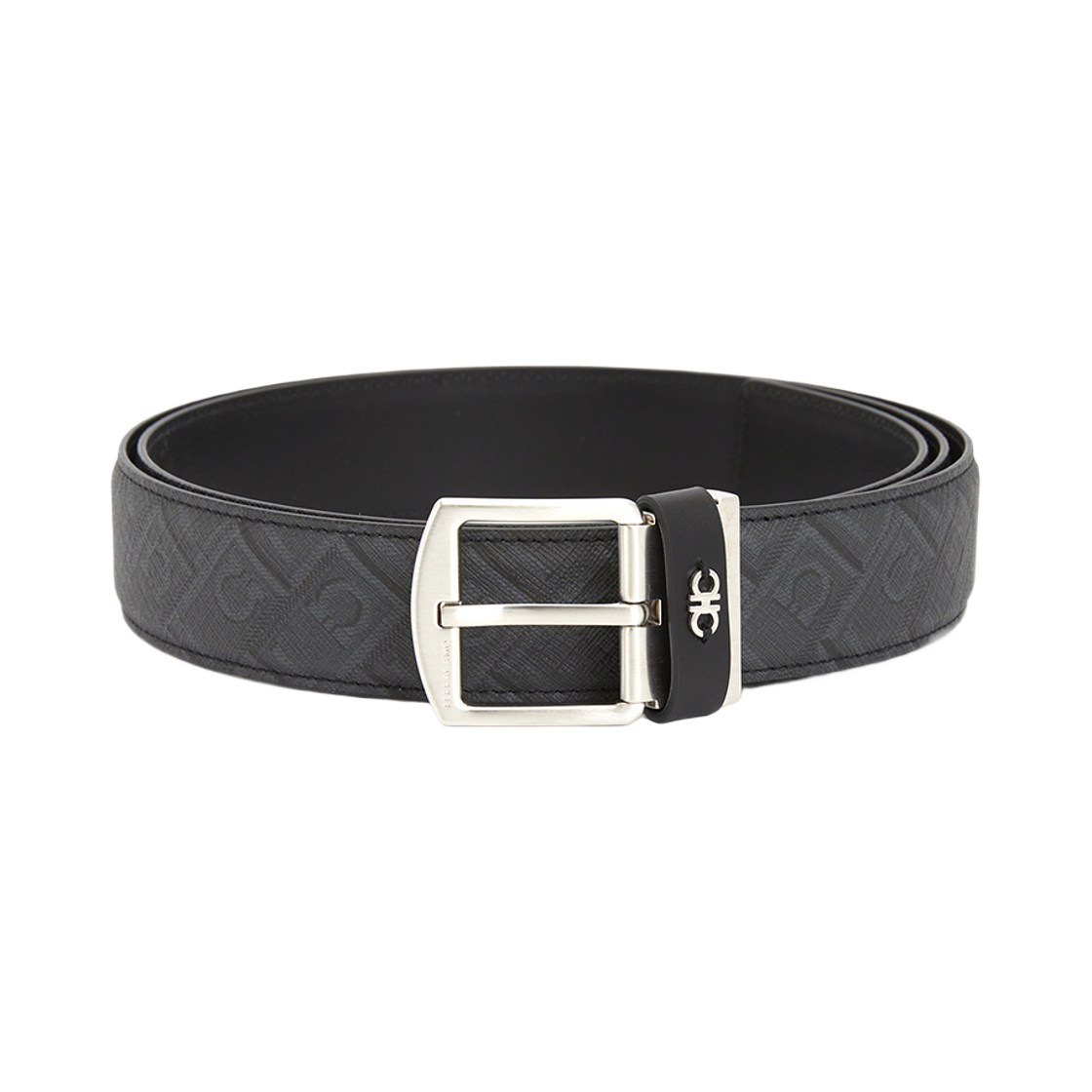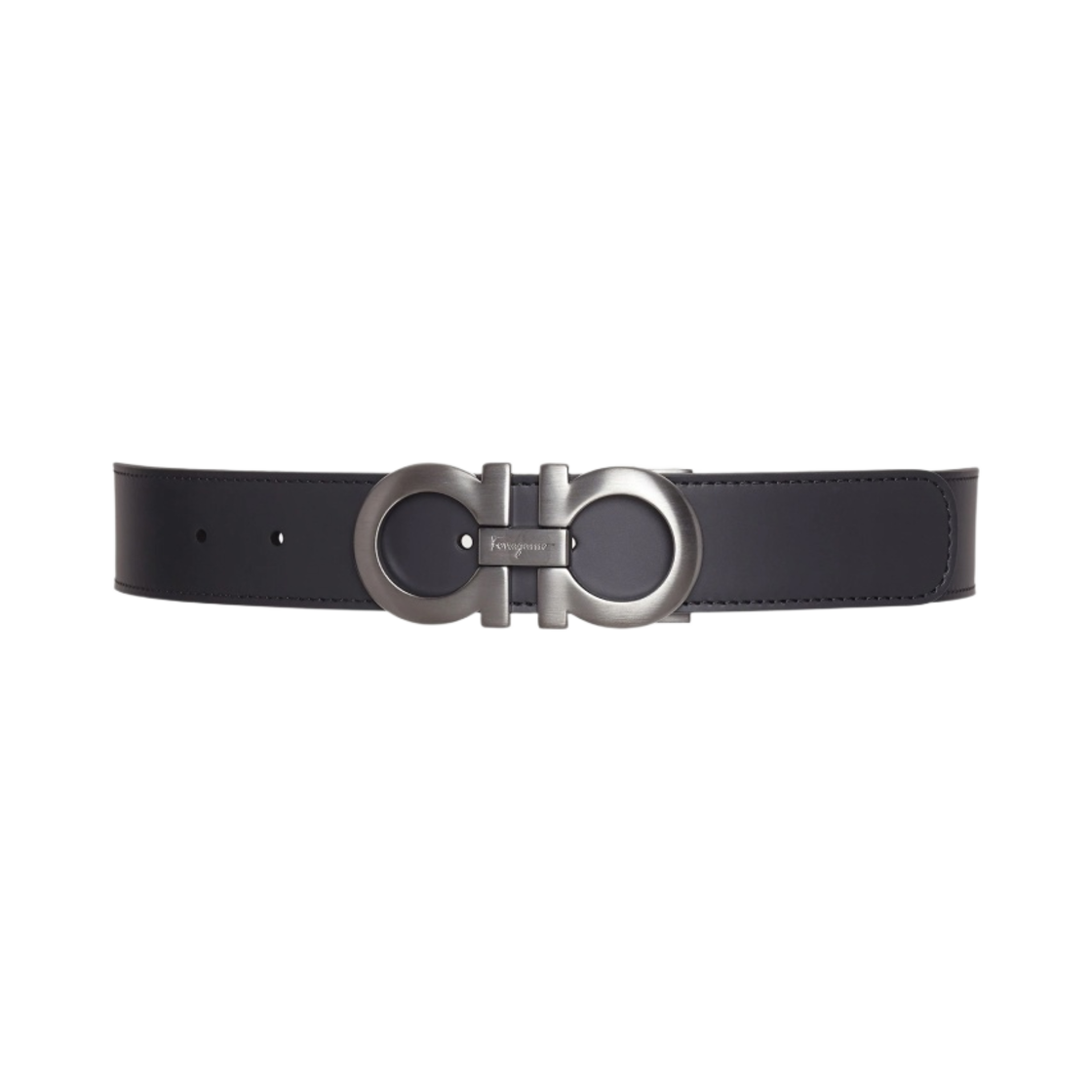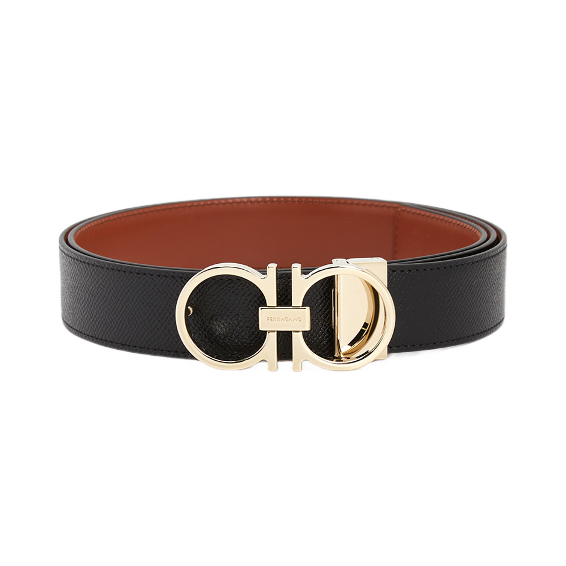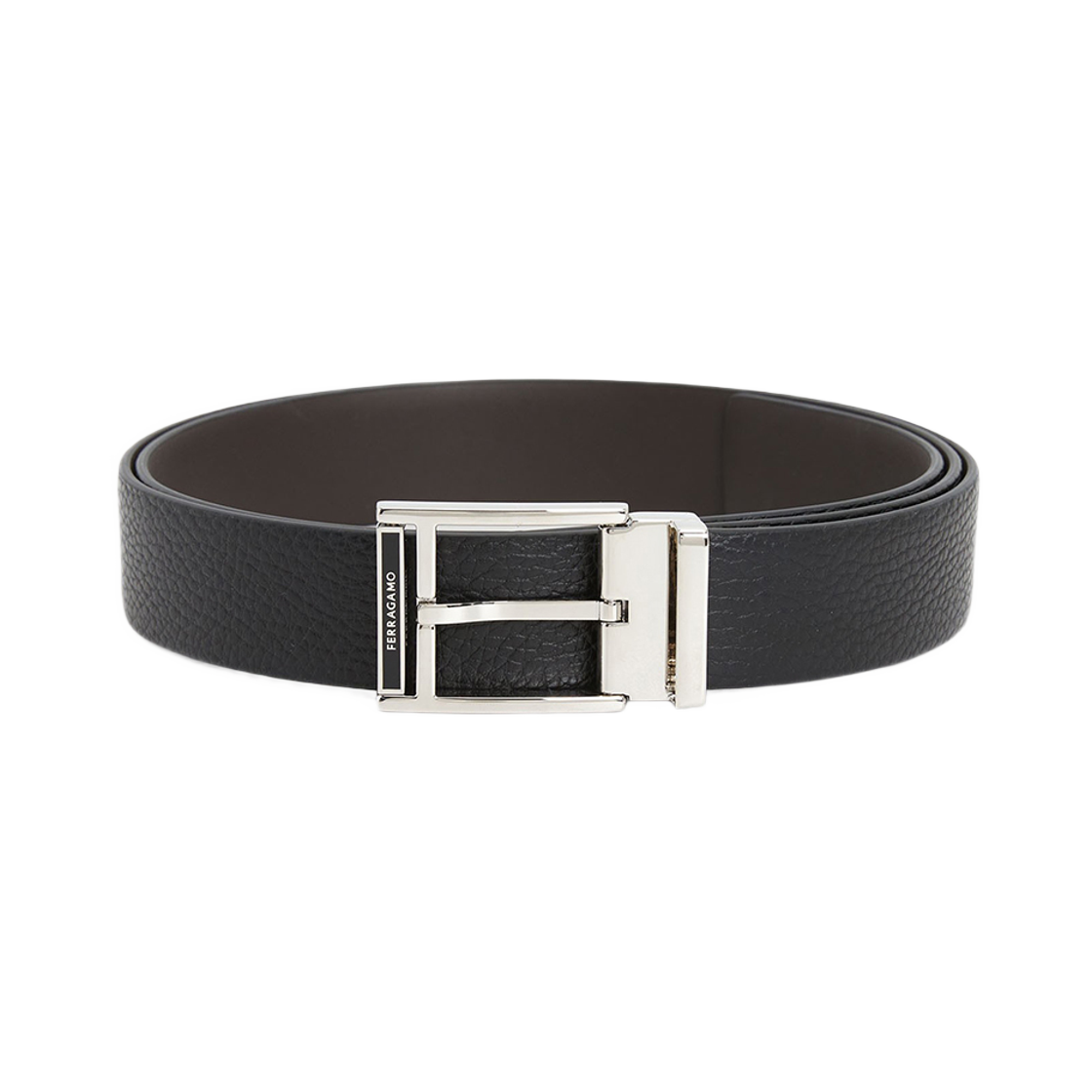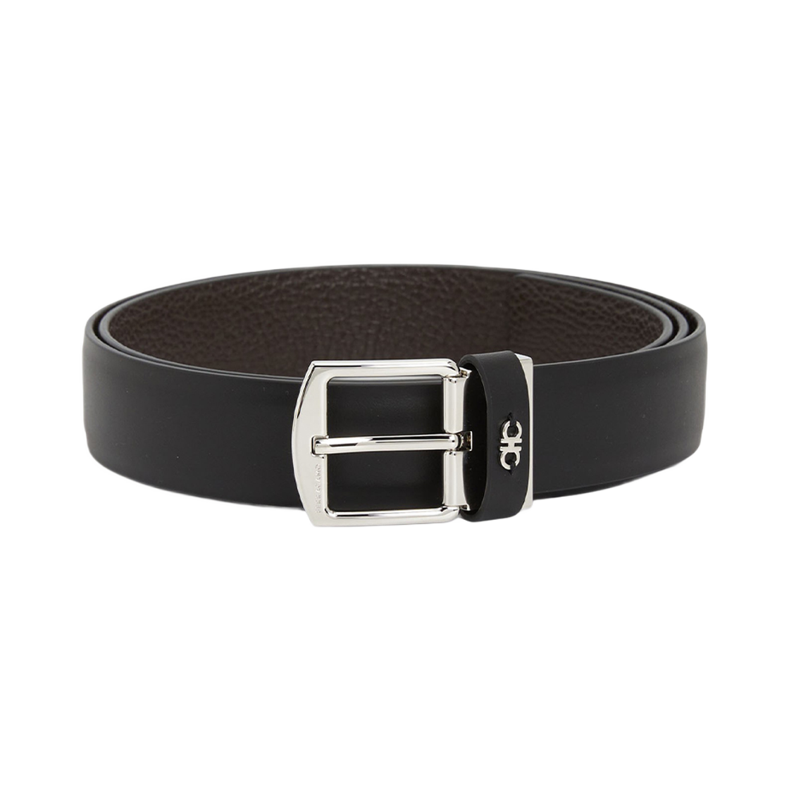 페라가모 리버시블 어드저스터블 텍스쳐드 카프스킨 레더 간치니 벨트 블랙 히코리
