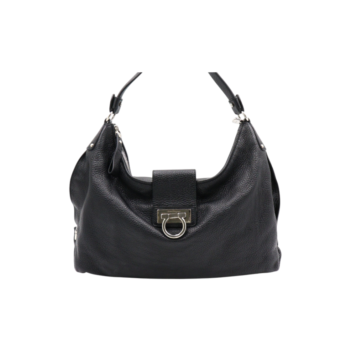 페라가모 21 A050 블랙 유광 레더 은장 간치니 락 버클 숄더백 aa36593