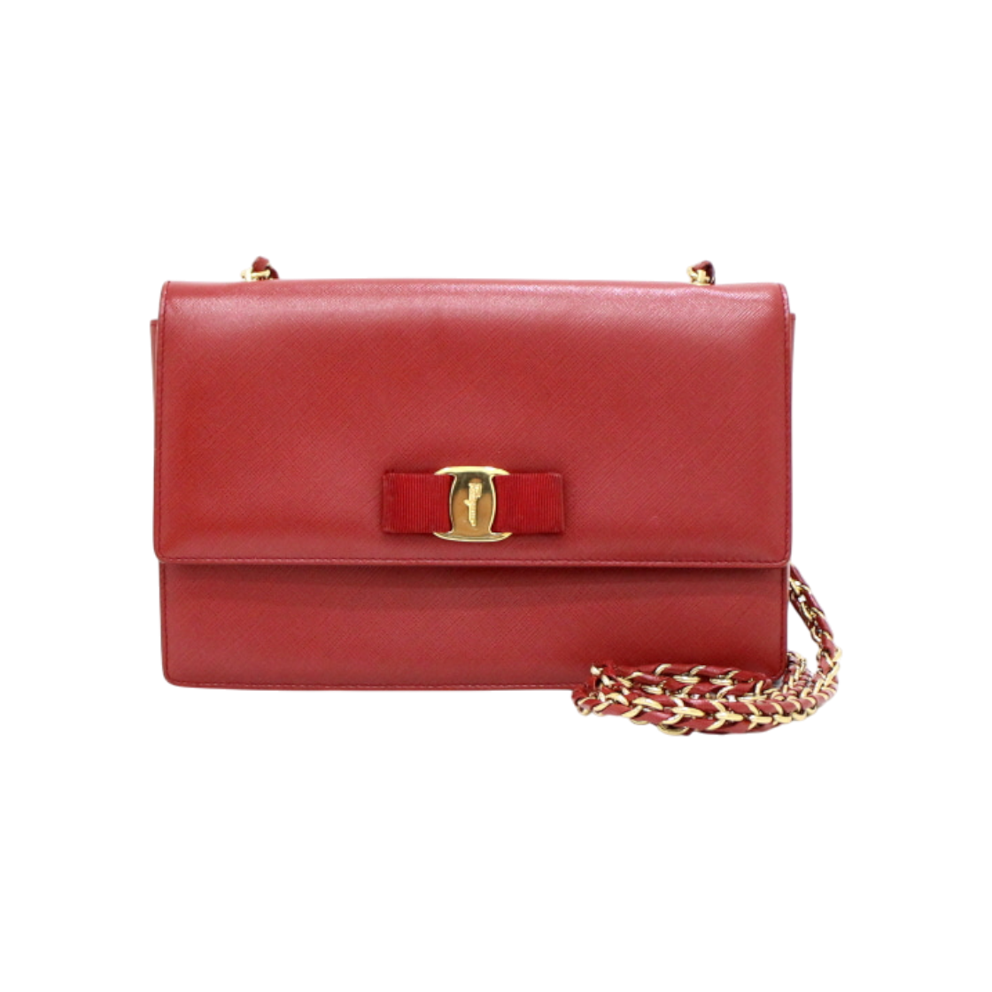 페라가모 22 D523 레드 바라 보우 미니 클러치 겸 금장 체인 숄더백 aa42905