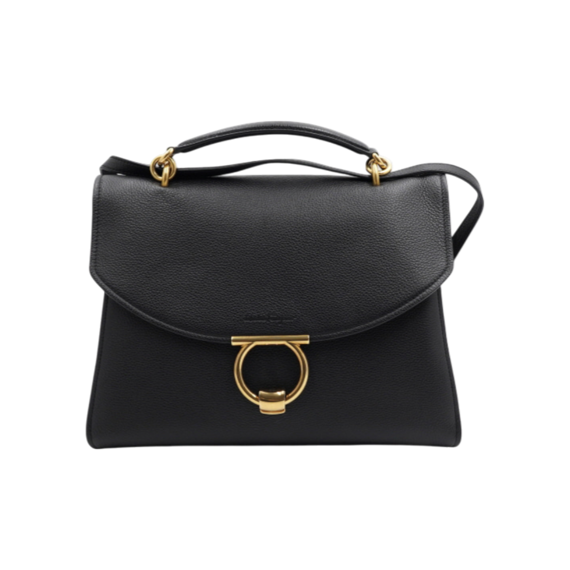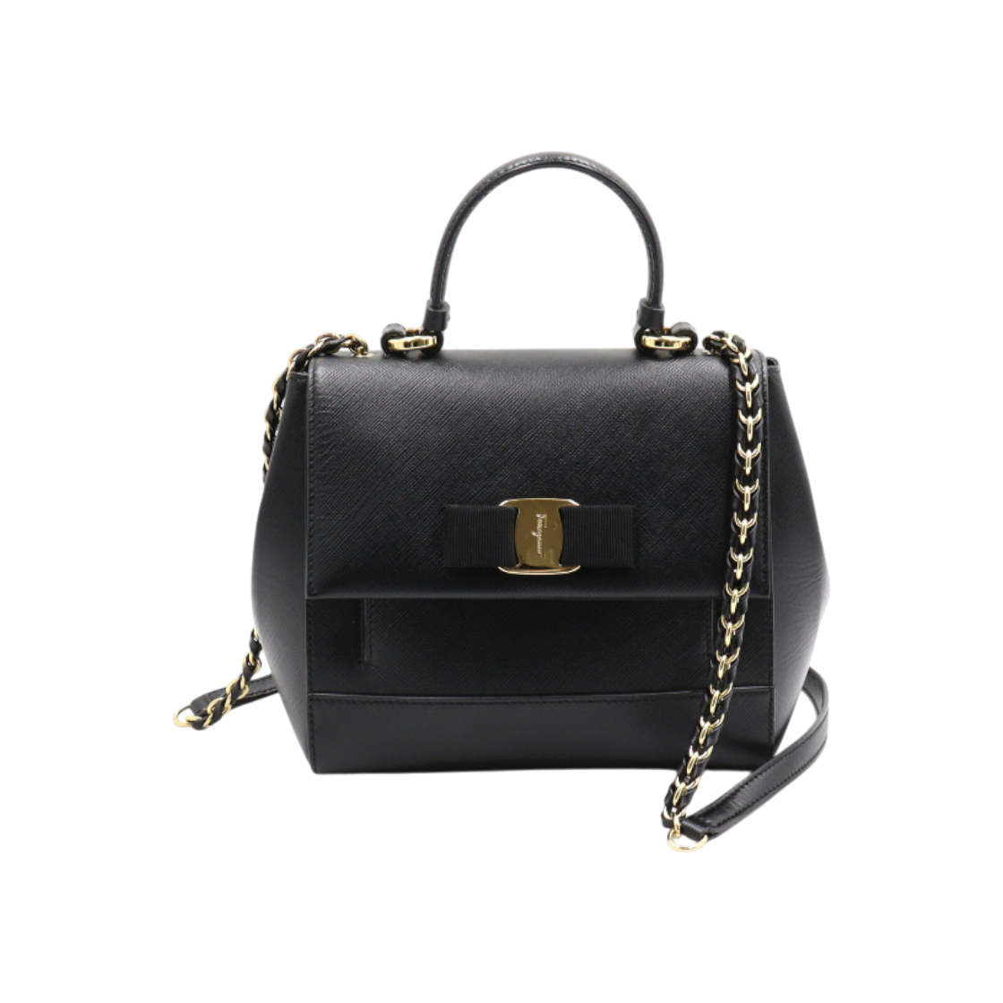페라가모 21 F570 블랙 사피아노 케리 스몰 금장로고 탑핸들 토트백 겸 체인 숄더백 aa46743