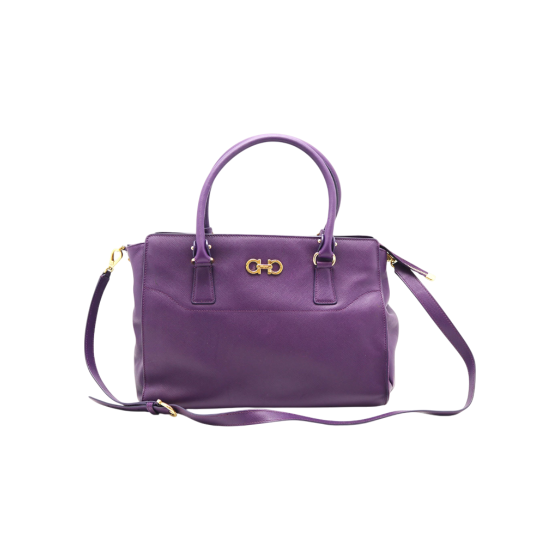 페라가모 21 E105 퍼플 레더 베툴라 간치니 금장 체인 토트백 aa51463