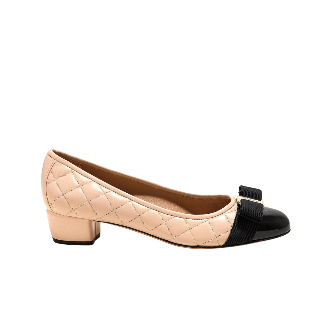 페라가모 퀼티드 바라 보우 펌프 블랙 - C