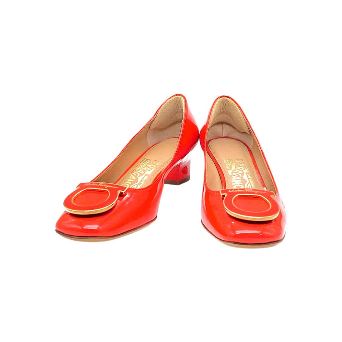 페라가모 YB37820 블랙 페이턴트 바라 로고 펌프스 aa57598 [미사용]