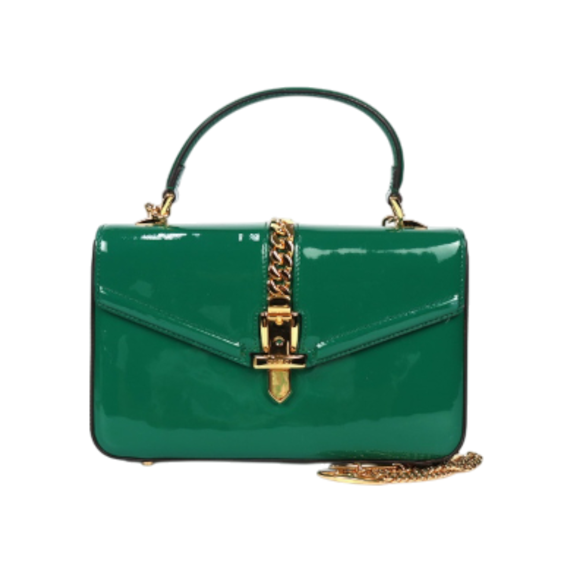 구찌 그린 페이턴트 실비 탑 핸들백 A-A29109