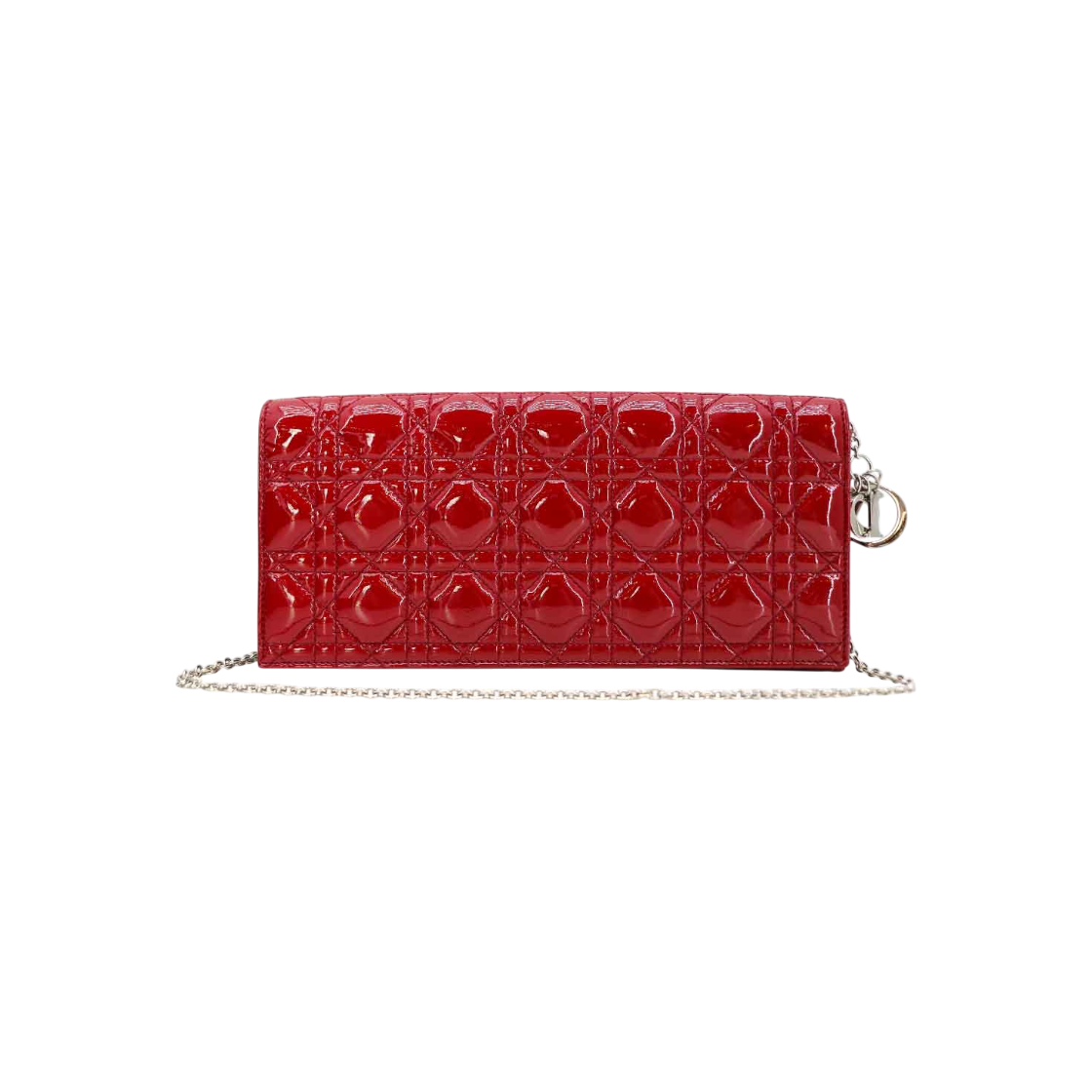 디올 레이디 플랩 카드 홀더 페이턴트 까나쥬 카프스킨 체리 레드