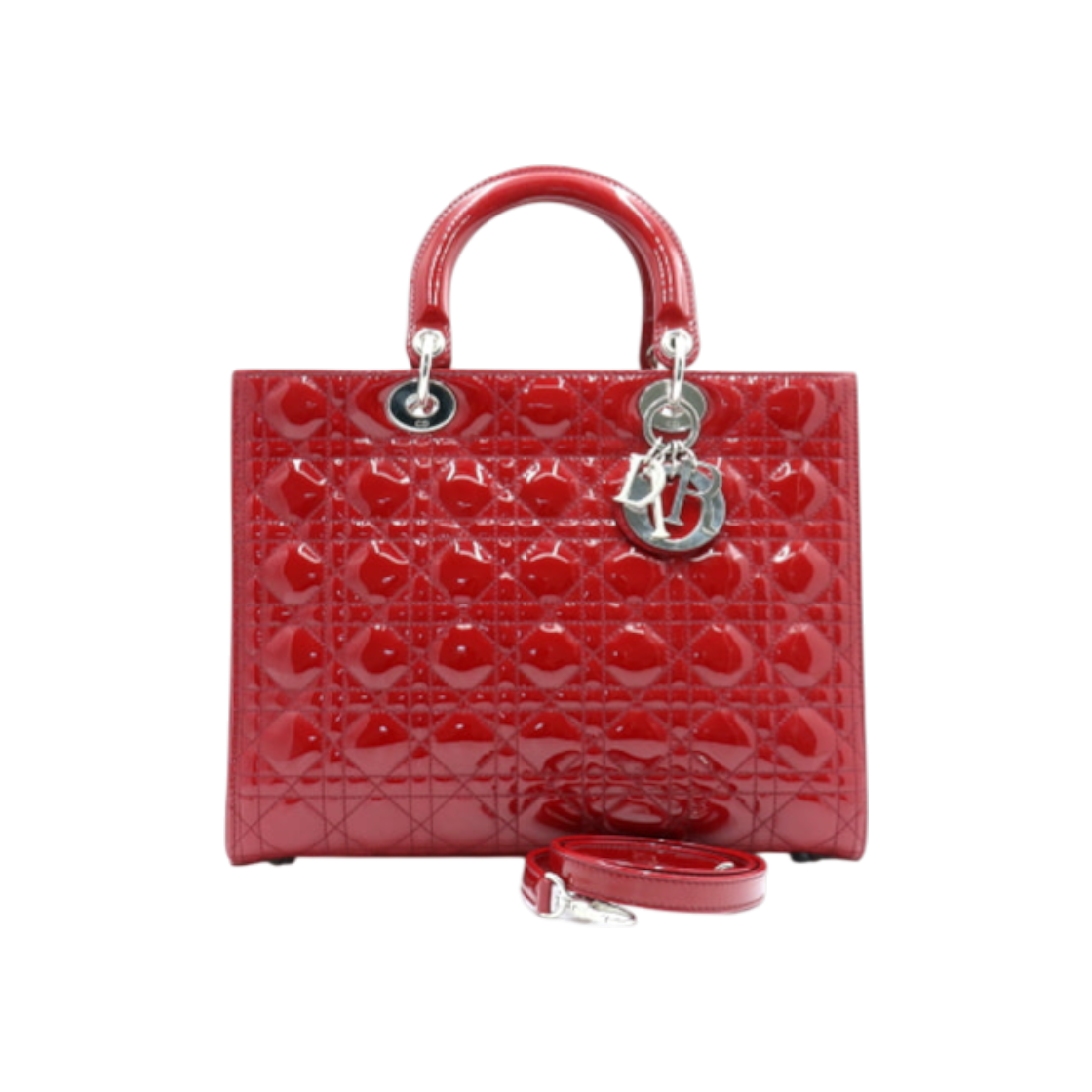 디올 CAL44561 레이디디올 클래식 라지 레드 페이턴트 까나쥬 토트백 겸 숄더백 aa24849