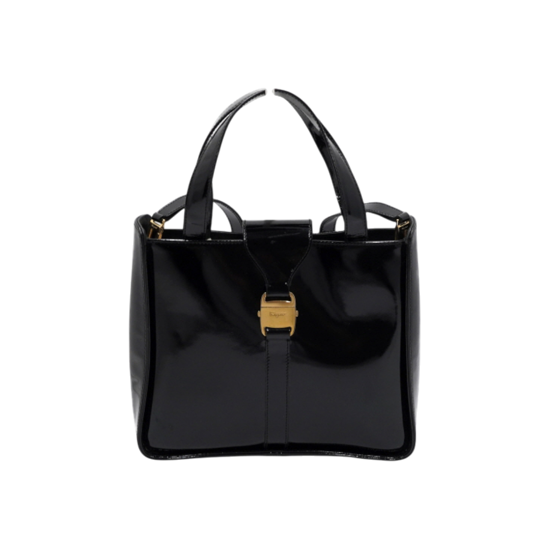 페라가모 21 0239 블랙 페이턴트 레더 금장 버클 토트백 겸 숄더백 aa57369