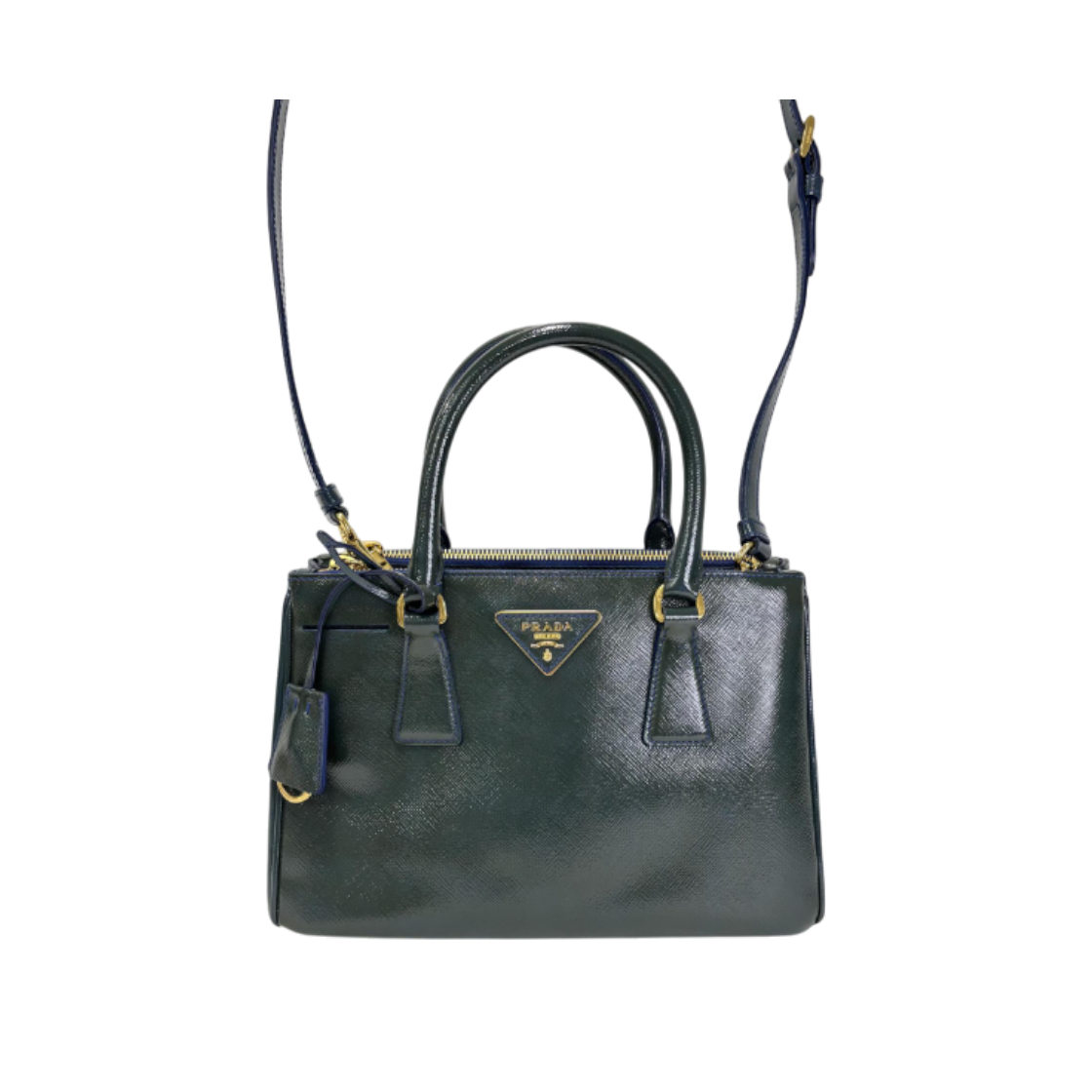 프라다 갤러리아 사피아노 페이턴트 미디움 그린/네이비