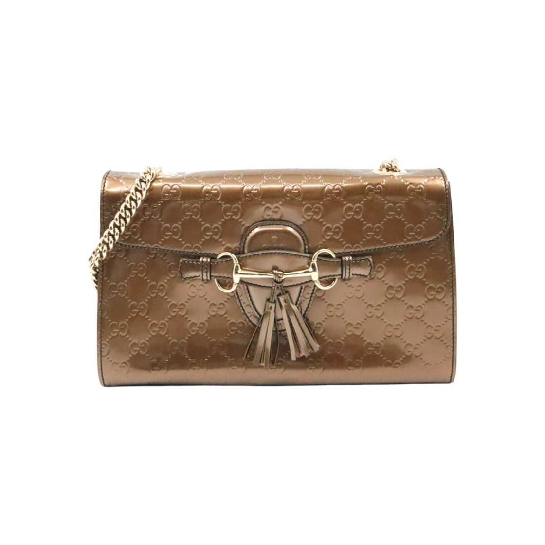 구찌 295402 메탈릭 브라운 마이크로 시마 페이턴트 에밀리 숄더백