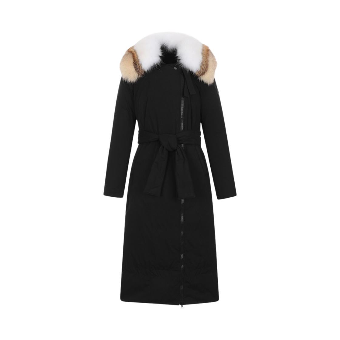 (W) 페트레이 르바리아 리사이클 폴리에스터 슬림핏 롱 다운 자켓 블랙