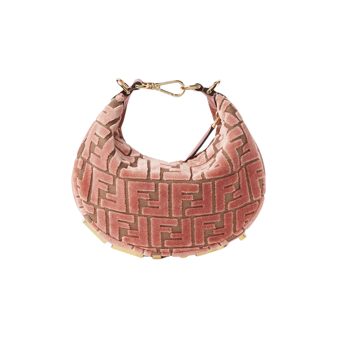 펜디 펜디그라피 FF 자카드 벨벳 미니백 핑크