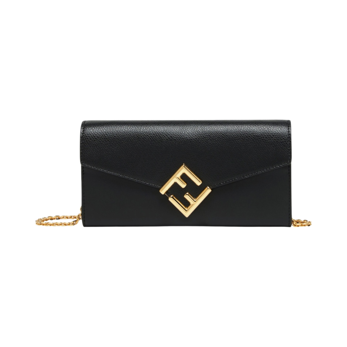 펜디 FF 다이아몬드 컨티넨탈 체인 레더 월렛 블랙