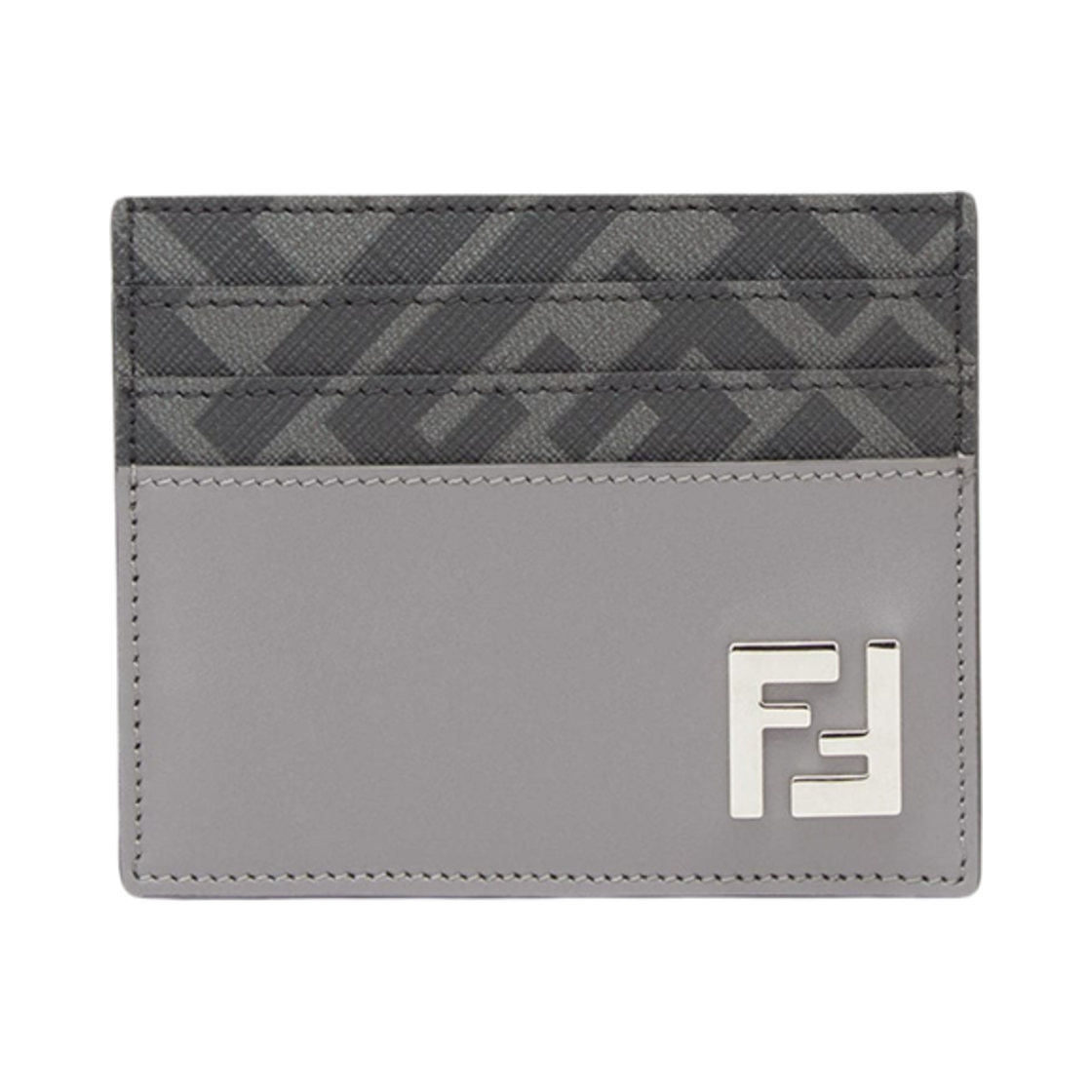 펜디 FF 다이아몬드 투톤 레더 플랫 카드 케이스 핑크 도브 그레이