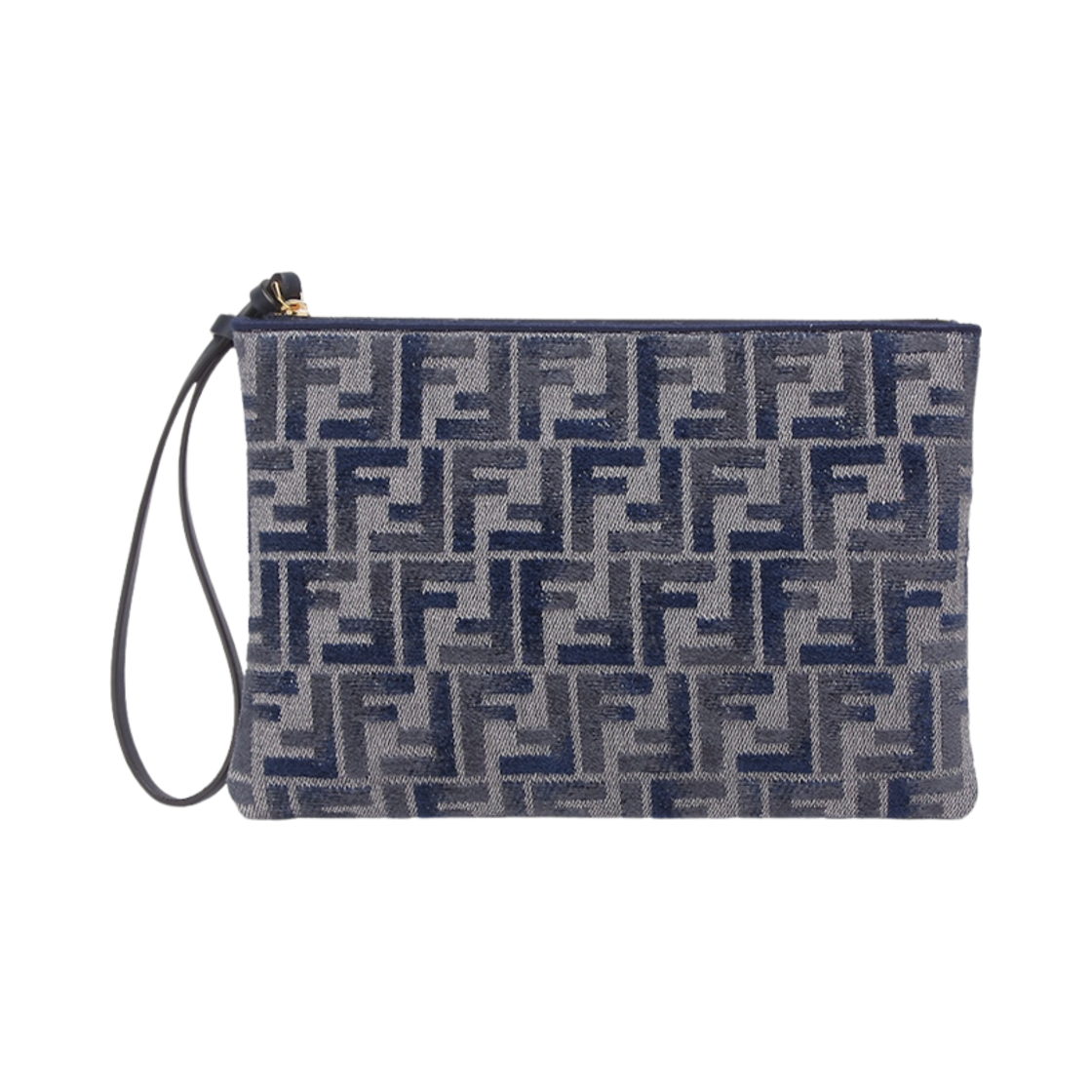 펜디 FF 자카드 플랫 파우치 미디움 블루