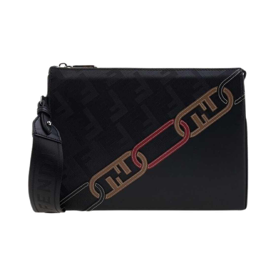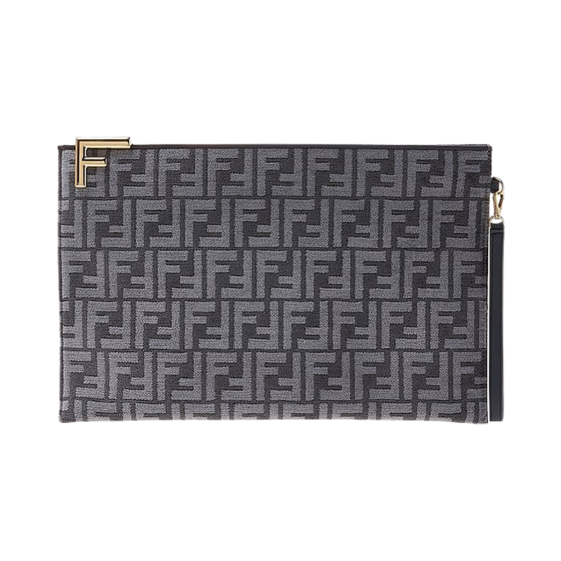 펜디 FF 자카드 플랫 파우치 미디움 블랙