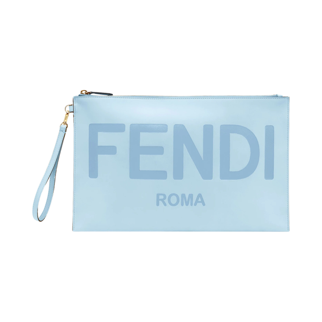 펜디 레더 라지 플랫 파우치 라이트 블루