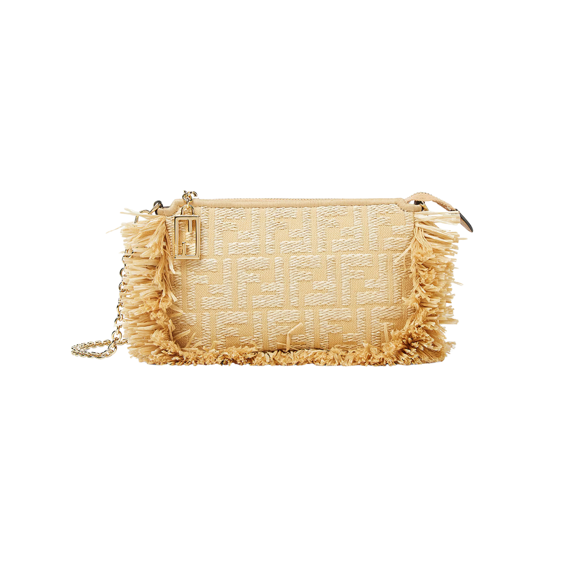 펜디 라피아 FF 자카드 패브릭 바게트 파우치 베이지