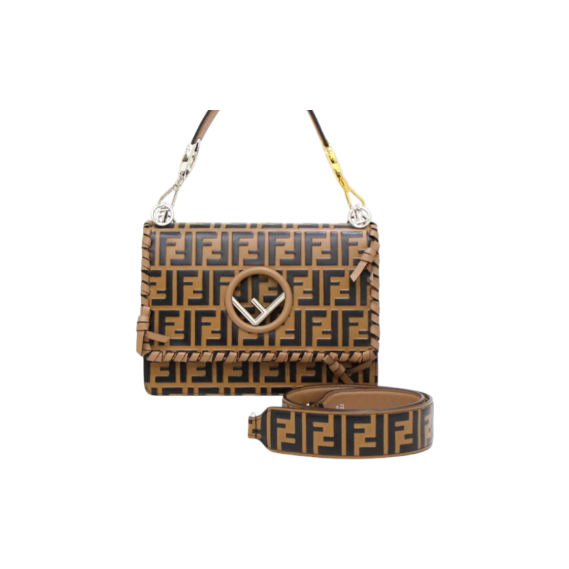 펜디 8BH133 FF로고 자가드 주키노 브라운 레더 트리밍 토트백