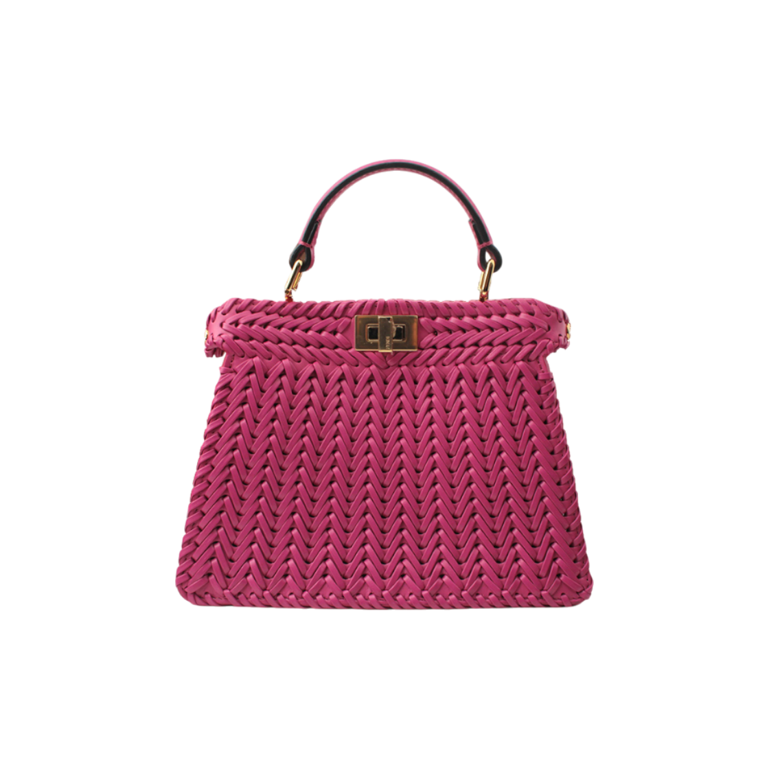 펜디 퍼플 위븐 골드 장식 미니 피카부 토트백 겸 크로스백