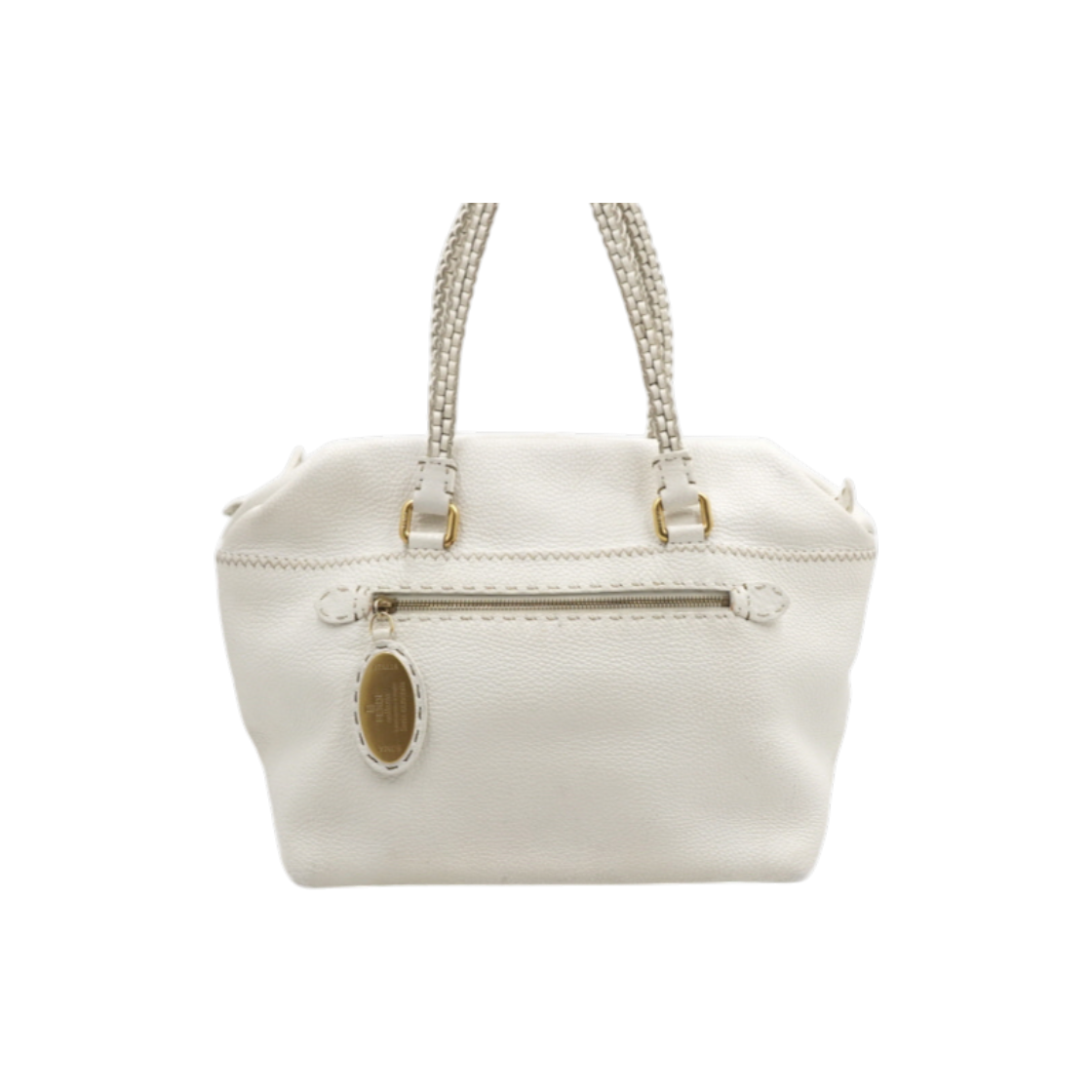 펜디 8BN189 화이트 레더 셀러리아 우븐 핸들 토트백 겸 숄더백 aa53087