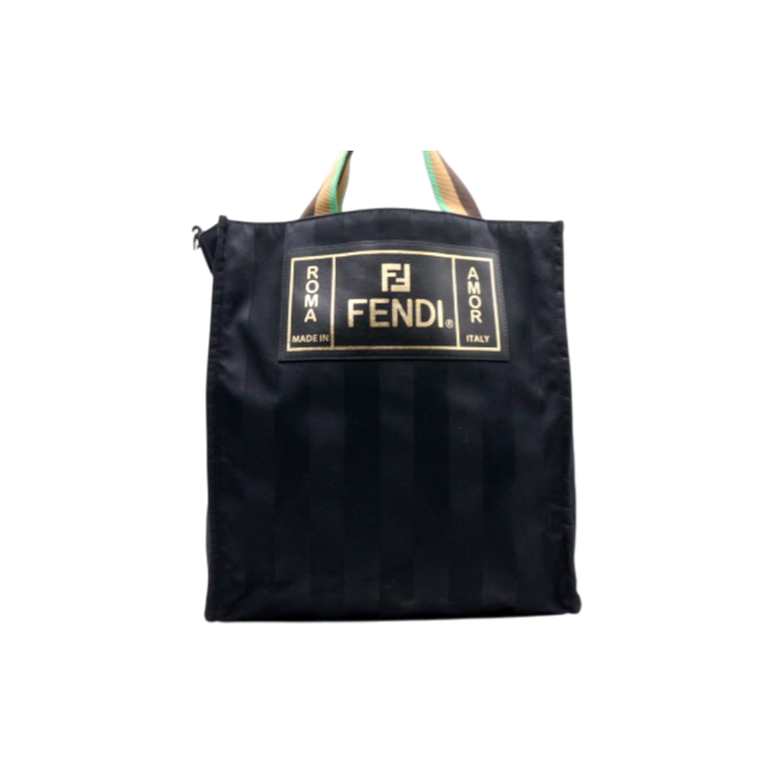 펜디 7VA454 블랙 FF 로고 로마 스트라이프 쇼퍼 토트백 aa37190