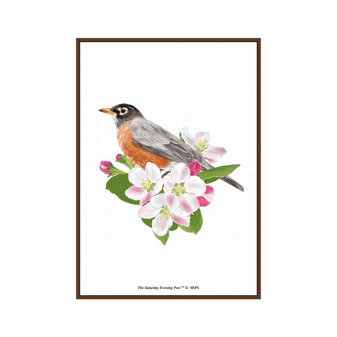 더 새터데이 이브닝 포스트 프레임 포스터 사과나무 가지 위의 로빈새 A2