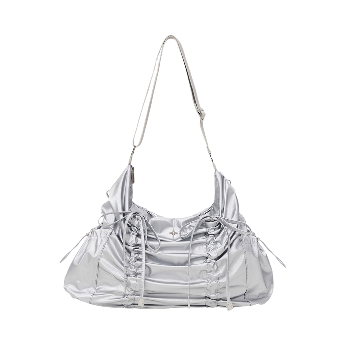 포어필 스트링 리본 라지 호보백 글로시 화이트
