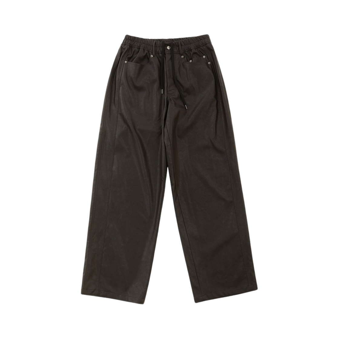 알렌느 드로우스트링 포우 레더 팬츠 브라운