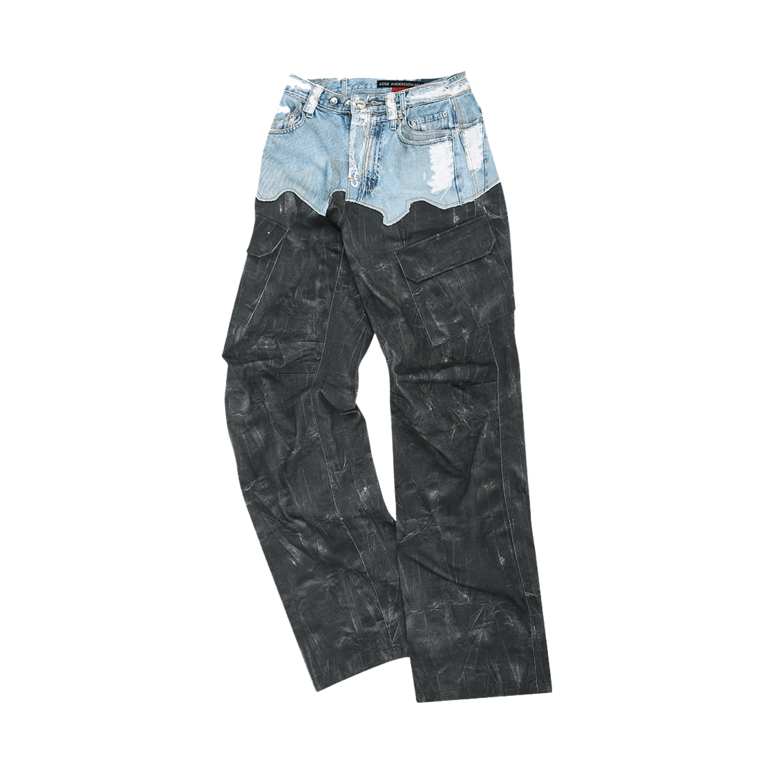 ADSB 앤더슨벨 포우 데님 & 스크래치 레더 프린티드 카고 팬츠 데님 블랙