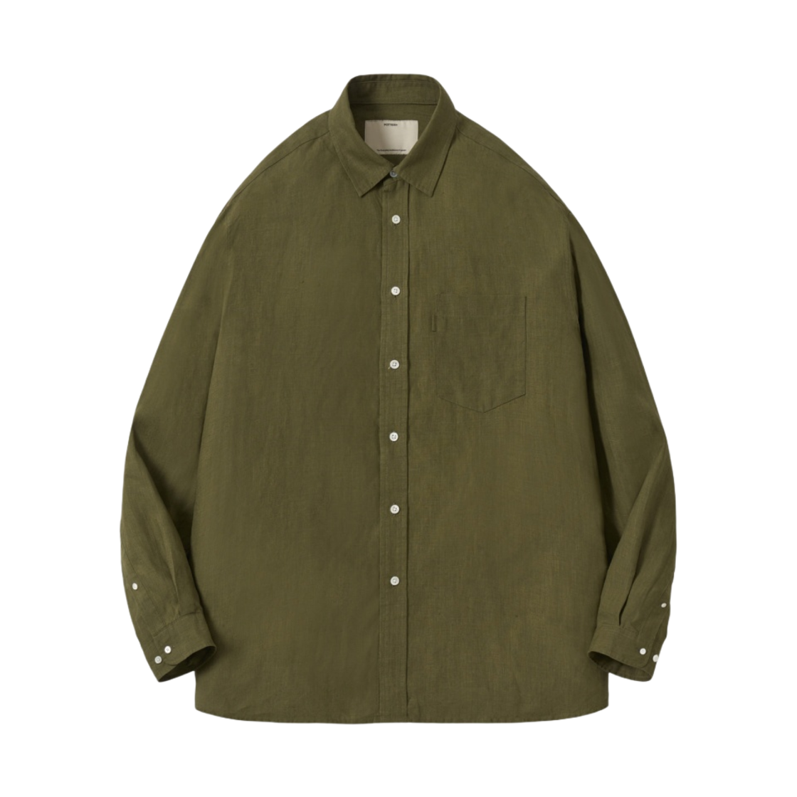 포터리 컴포트 셔츠 리넨 60/1 하이 덴시티 포플린 클로스 리실리언트 피니쉬 올리브