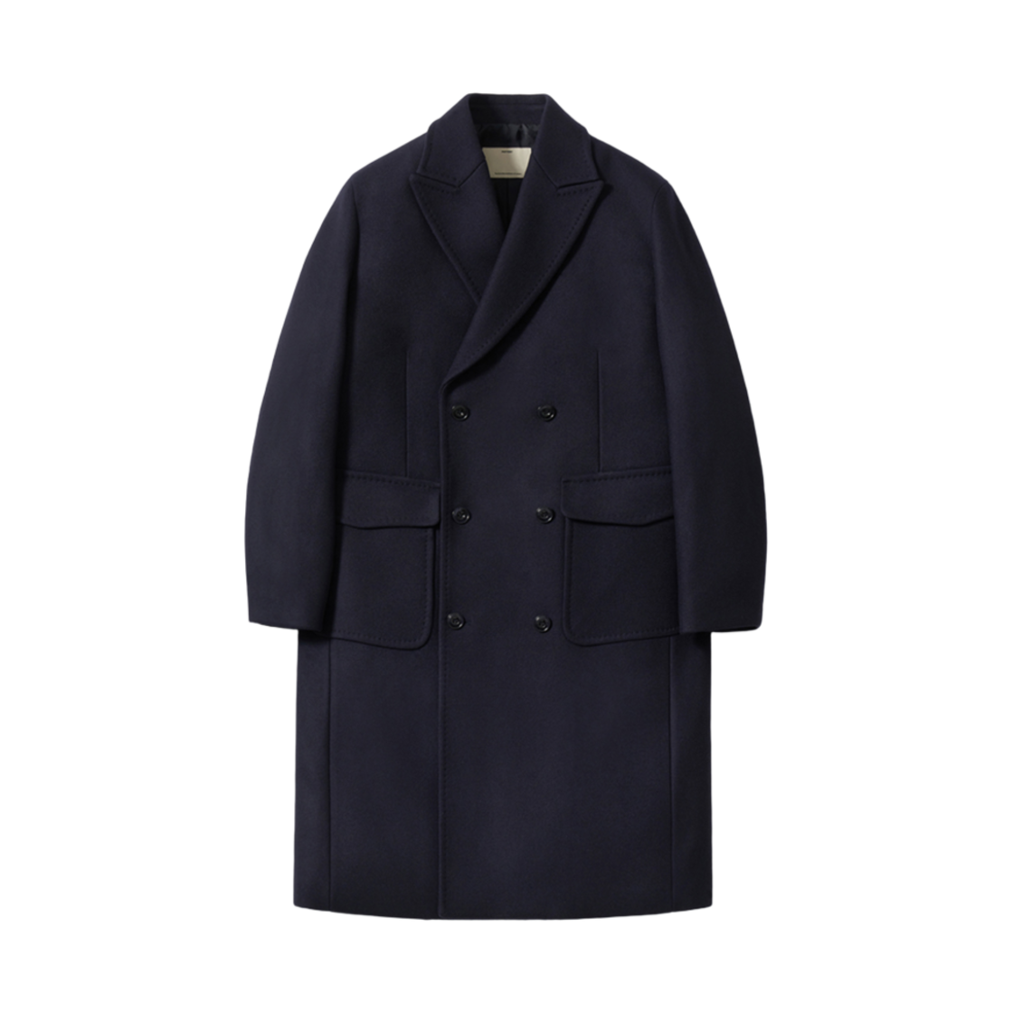 포터리 멜튼 울 더블 브레스티드 코트 수퍼 파인 캐시미어 울 블렌드 멜튼 클로스 다크 네이비