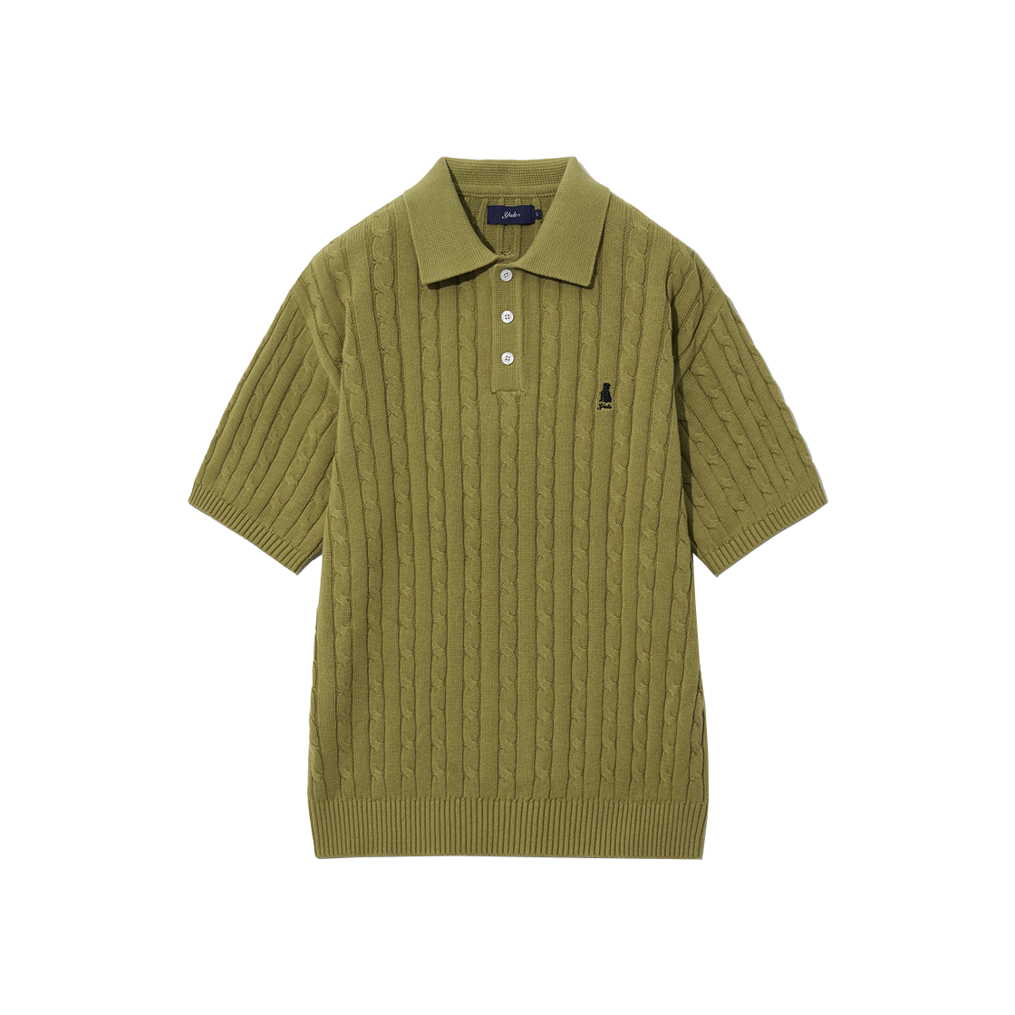 예일 메쉬 반팔 폴로 니트_피그먼트 카키