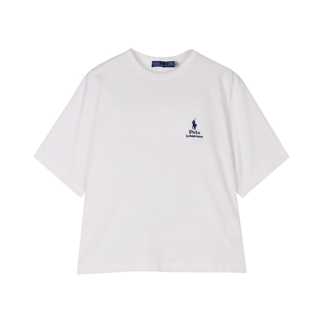 폴로 랄프 로렌 우먼 슈렁큰 핏 로고 저지 티 화이트 - 25SS