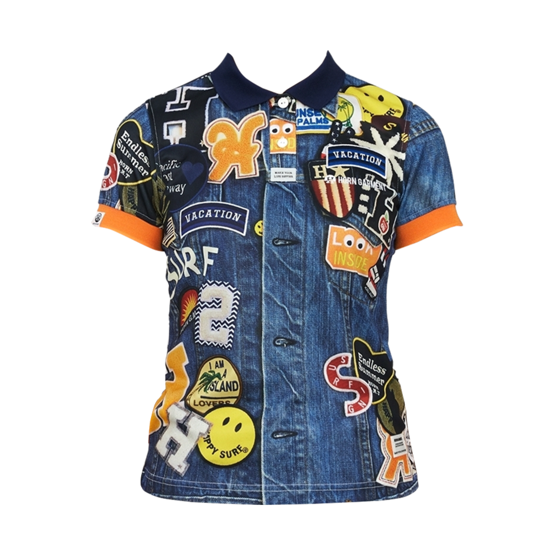루이비통 패치워크 롱슬리브 데님 폴로 셔츠 인디고