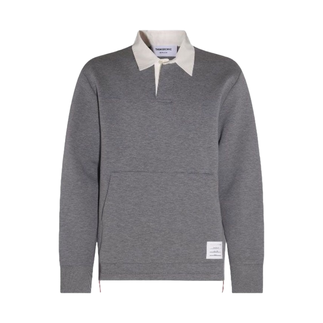 톰브라운 더블 페이스 테크 콘트라스트 칼라 럭비 폴로 미디움 그레이