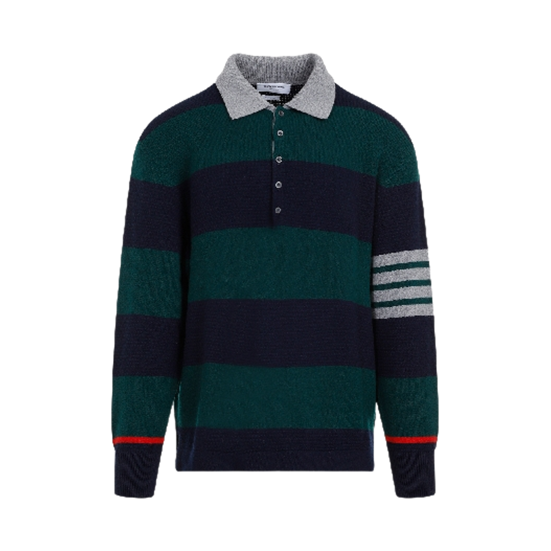 톰브라운 럭비 스트라이프 메리노 사선 롱슬리브 폴로 다크 그린