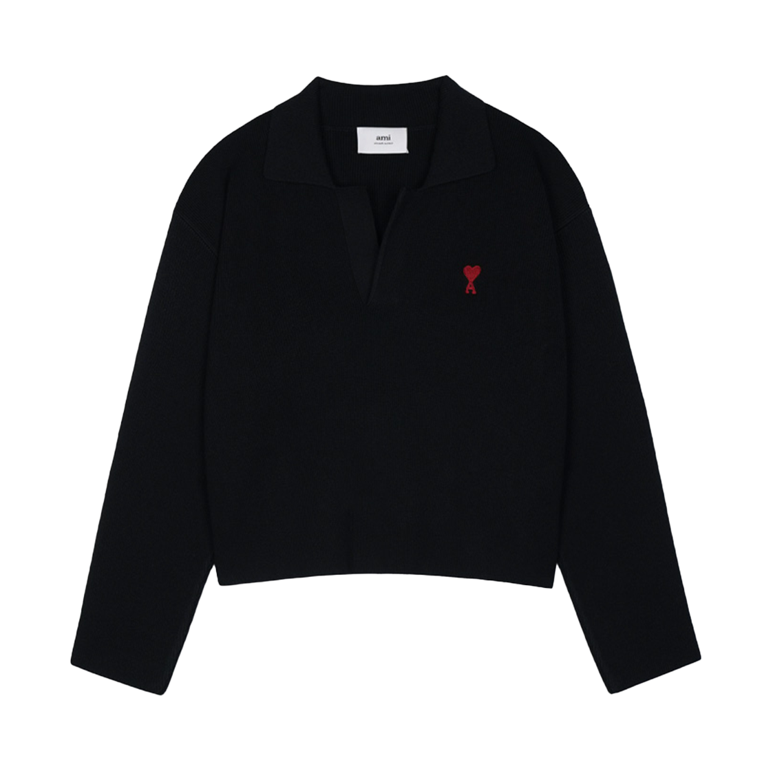 (W) 아미 스몰 하트 로고 롱 슬리브 니트 폴로 셔츠 블랙