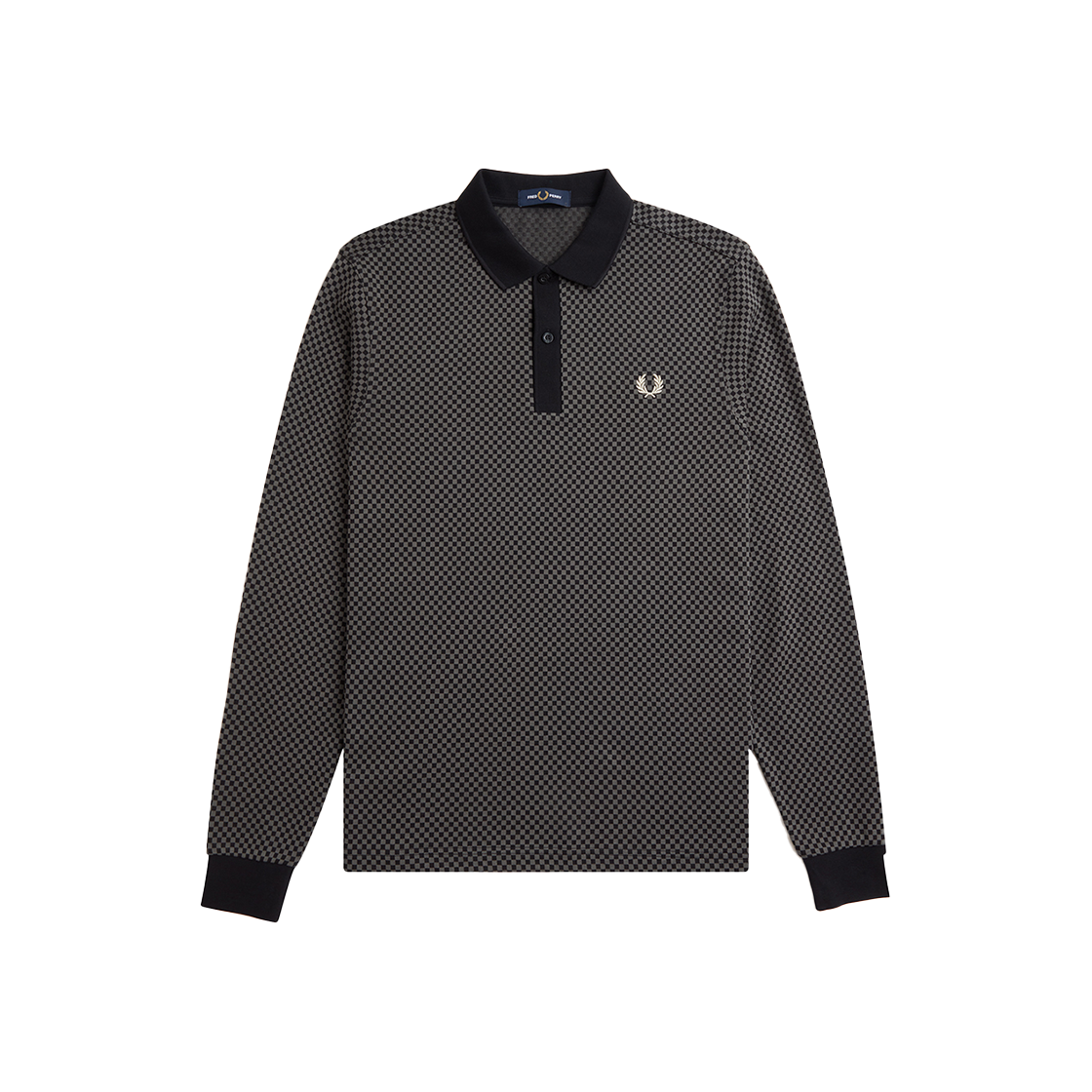 프레드페리 마이크로 체커보드 롱 슬리브 폴로 셔츠 블랙 필드그린
