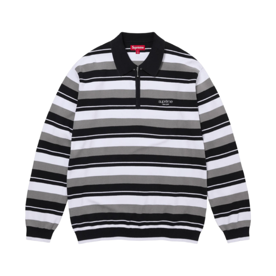 슈프림 스트라이프 집 롱슬리브 폴로 블랙 - 24FW