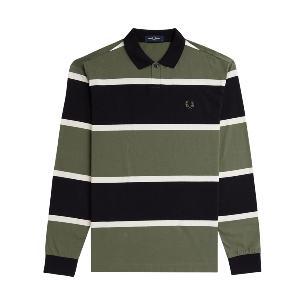 프레드페리 스트라이프 롱 슬리브 폴로 셔츠 로렐리스그린
