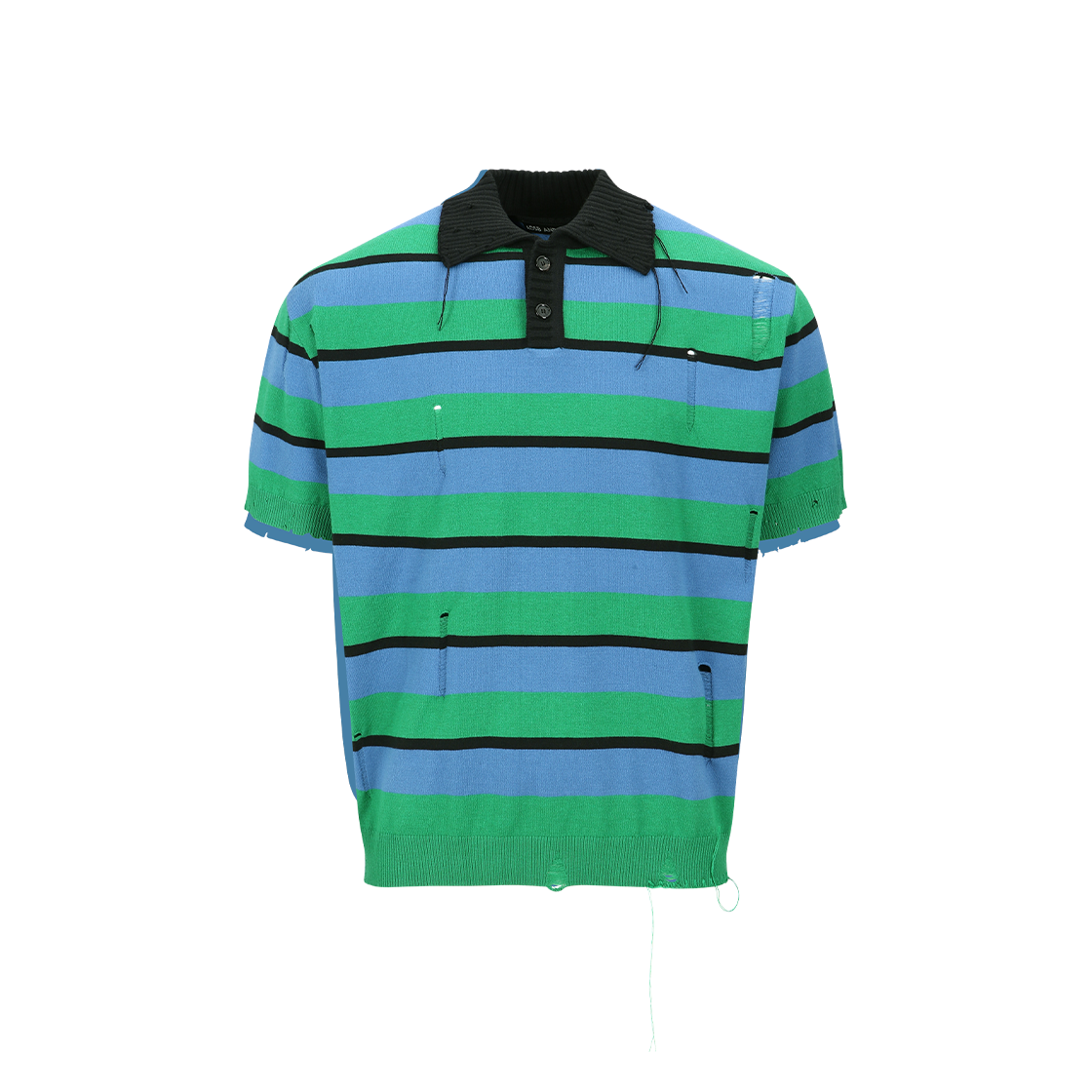 ADSB 앤더슨벨 데미지 스트라이프 폴로 스웨터 블루/그린/블랙