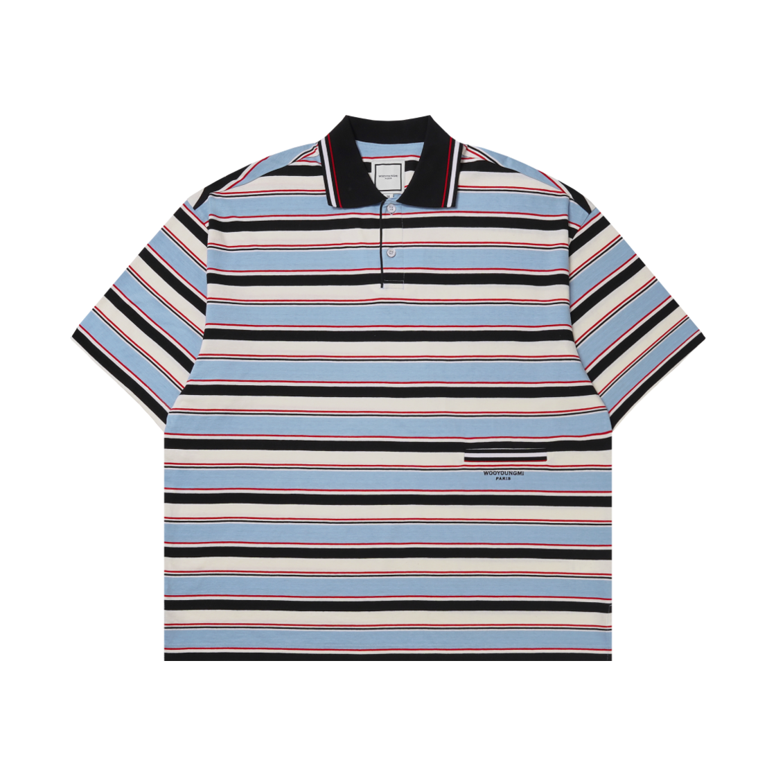 우영미 스트라이프 폴로 티셔츠 블루 - 25SS