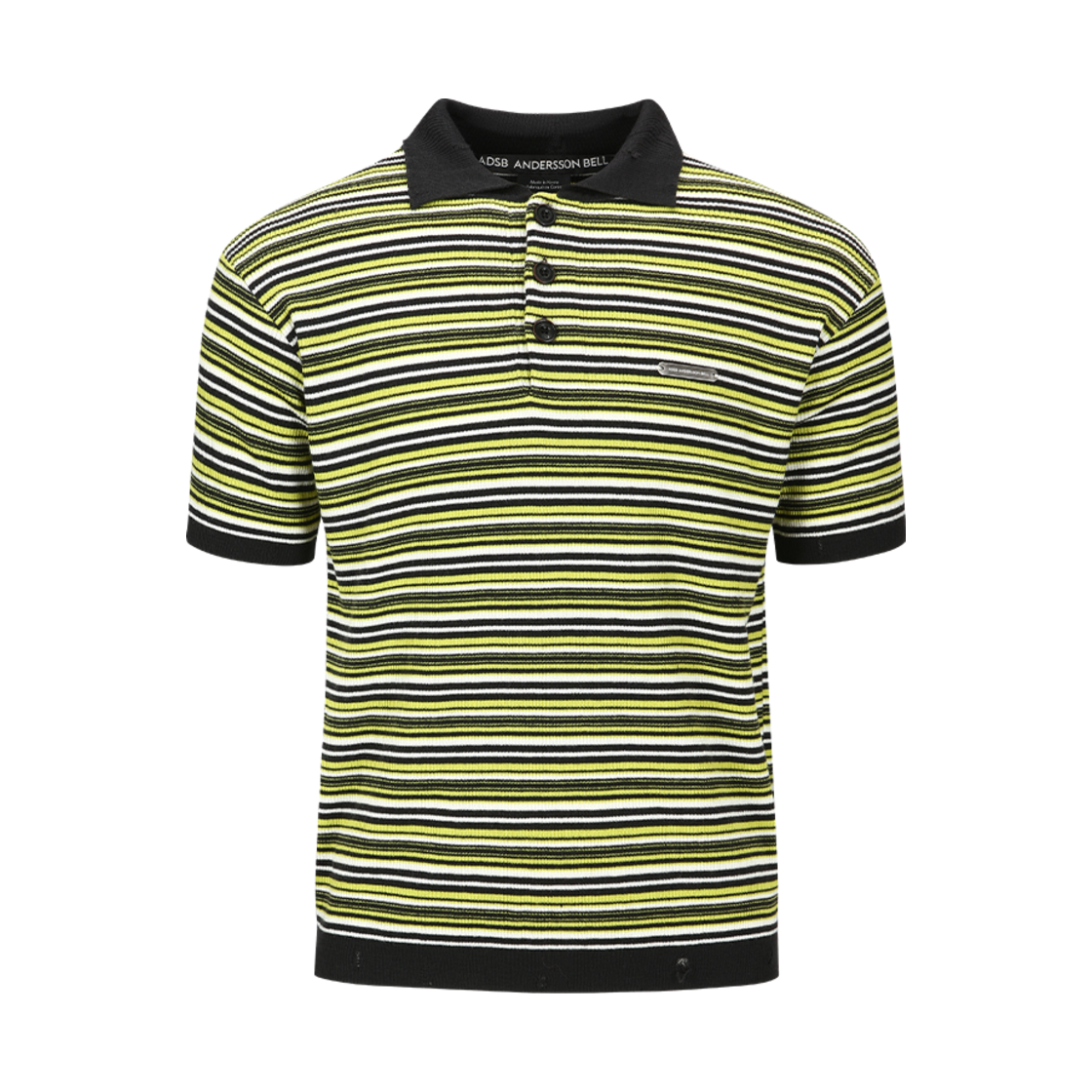 ADSB 앤더슨벨 스트라이프 폴로 스웨터 챠콜 라임
