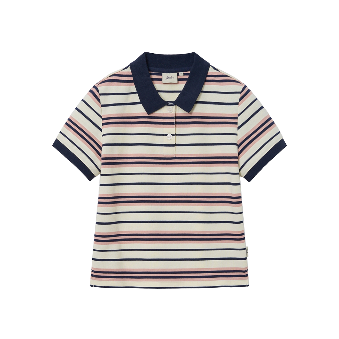 예일 우먼즈 멀티 스트라이프 폴로 셔츠_크림