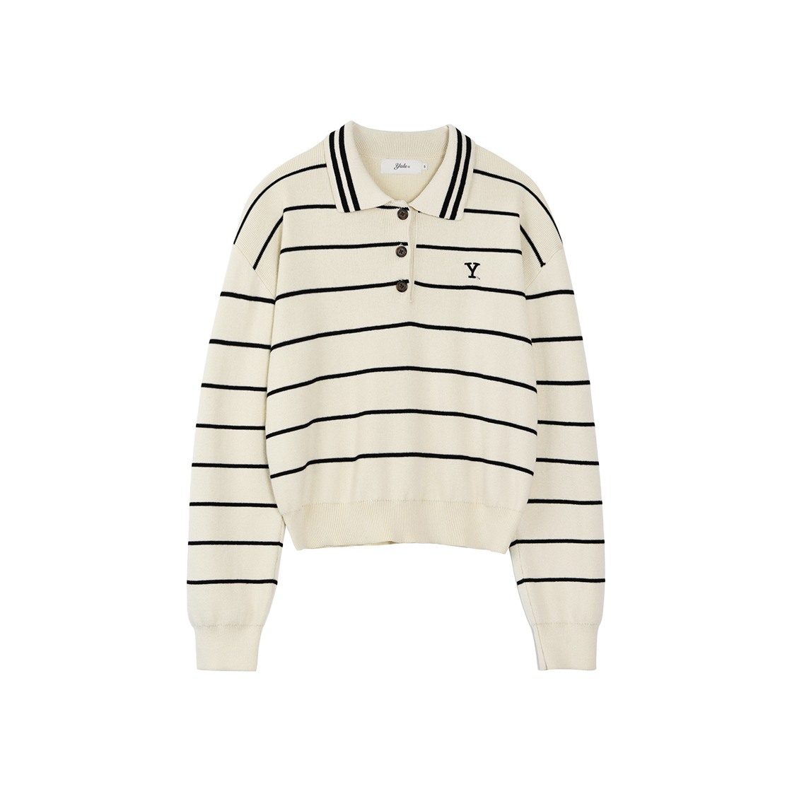예일 우먼즈 Y로고 스트라이프 폴로 니트_아이보리