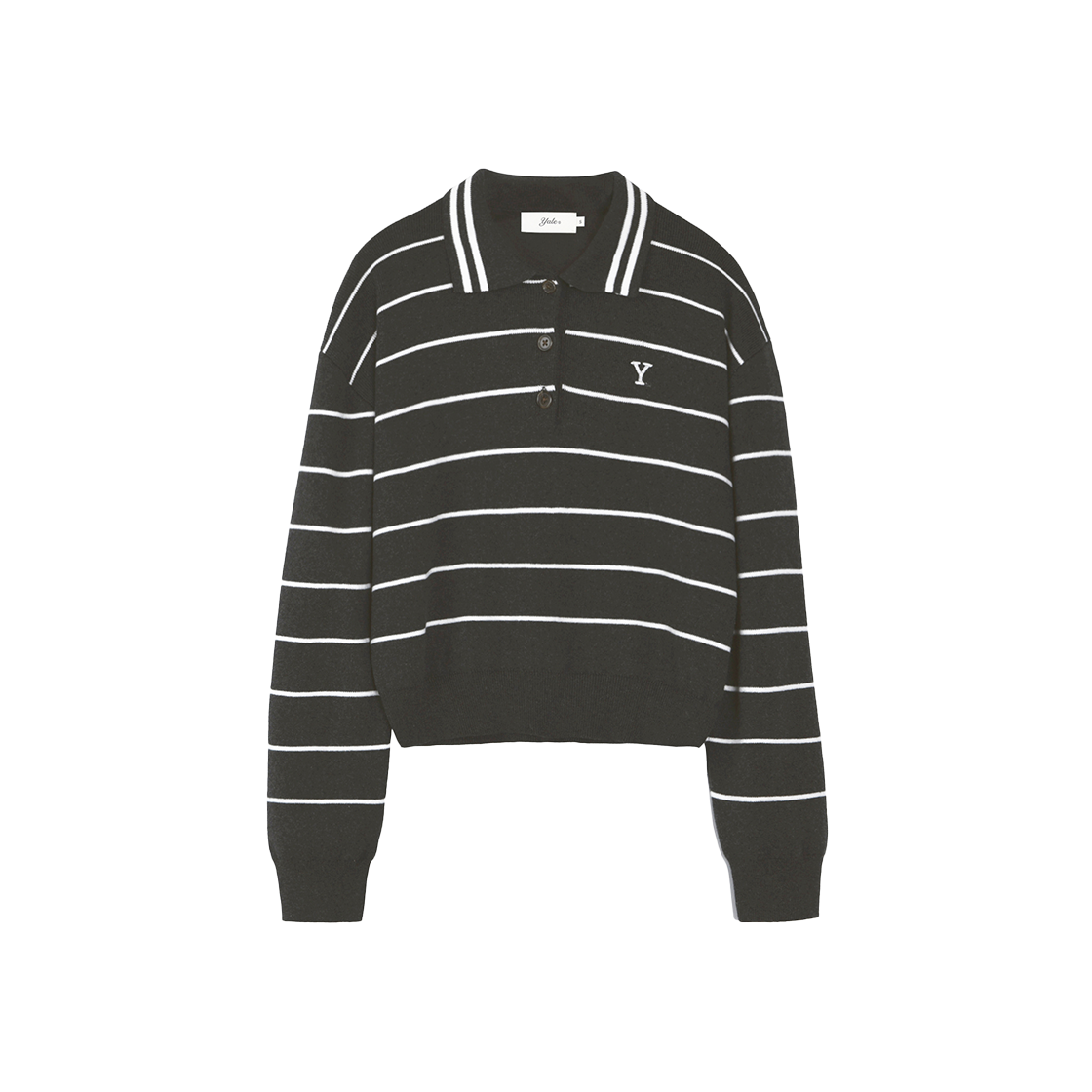 예일 우먼즈 Y로고 스트라이프 폴로 니트_차콜